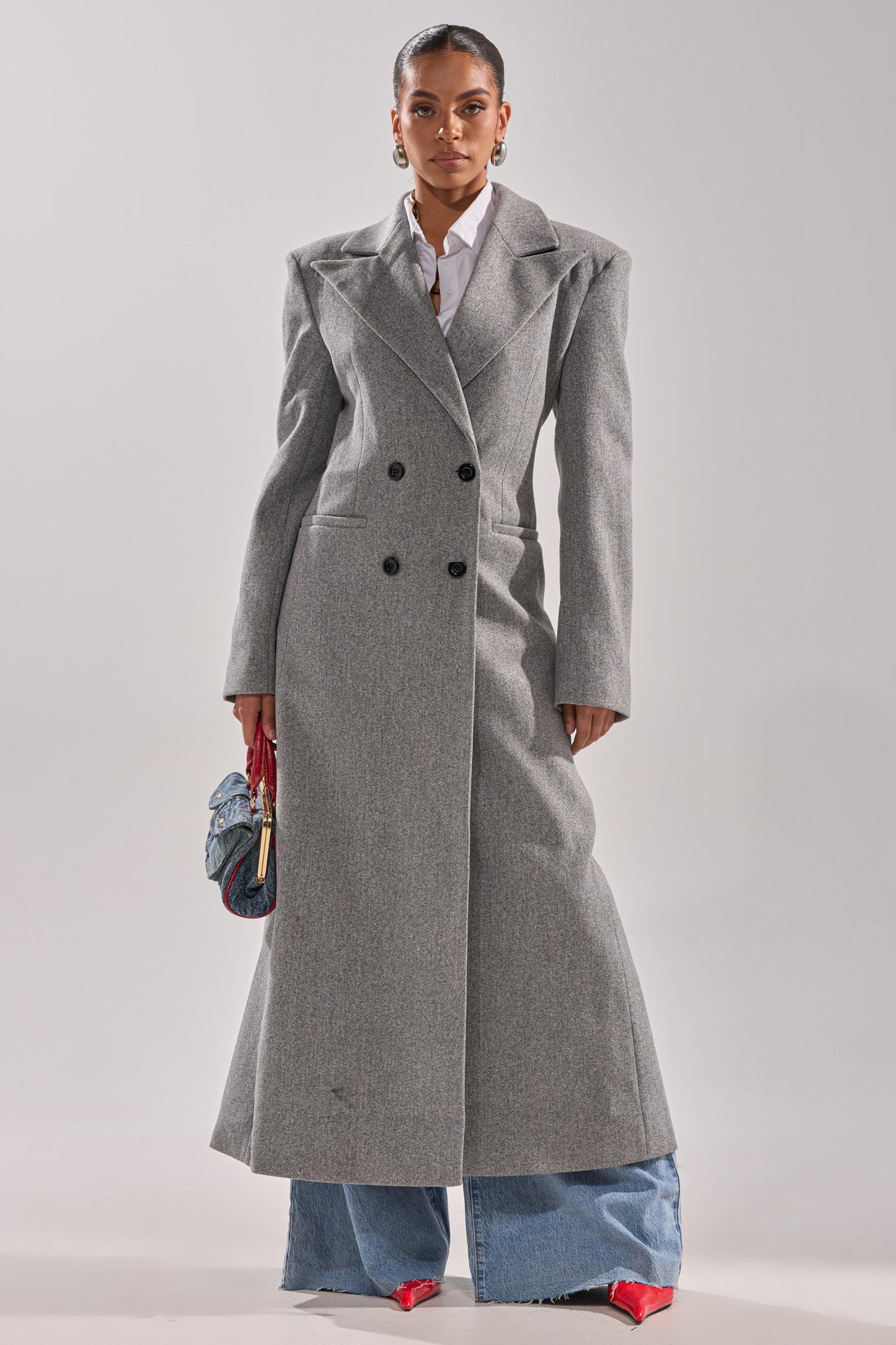 Elegance is a state of mind in the AKIRA Label Scarlett Luxe Trench Coat. This classic style is brought to you in non-stretch scuba knit base and features a notch lapel collar, lightly padded shoulders for natural shaping, long sleeves with buttoned cuffs, dual mock welted front pockets, a satiny contrast inner lining, and front and back vent slits. Complete with double breasted front button closures, and a maxi longline silhouette. - Shell: 100% Polyester, Lining: 97% Polyester 3% Spandex- No Stretch- Imported (all measurements approximate from size small)- 53” Shoulder to Hem- 25” Sleeves- 18” Shoulder to Shoulder- Model is 5’11” and is wearing size smallProduct ID: 431197 (all measurements approximate from size 1X)- 55” Shoulder to Hem- 27” Sleeves- 20” Shoulder to ShoulderProduct ID: 431201
