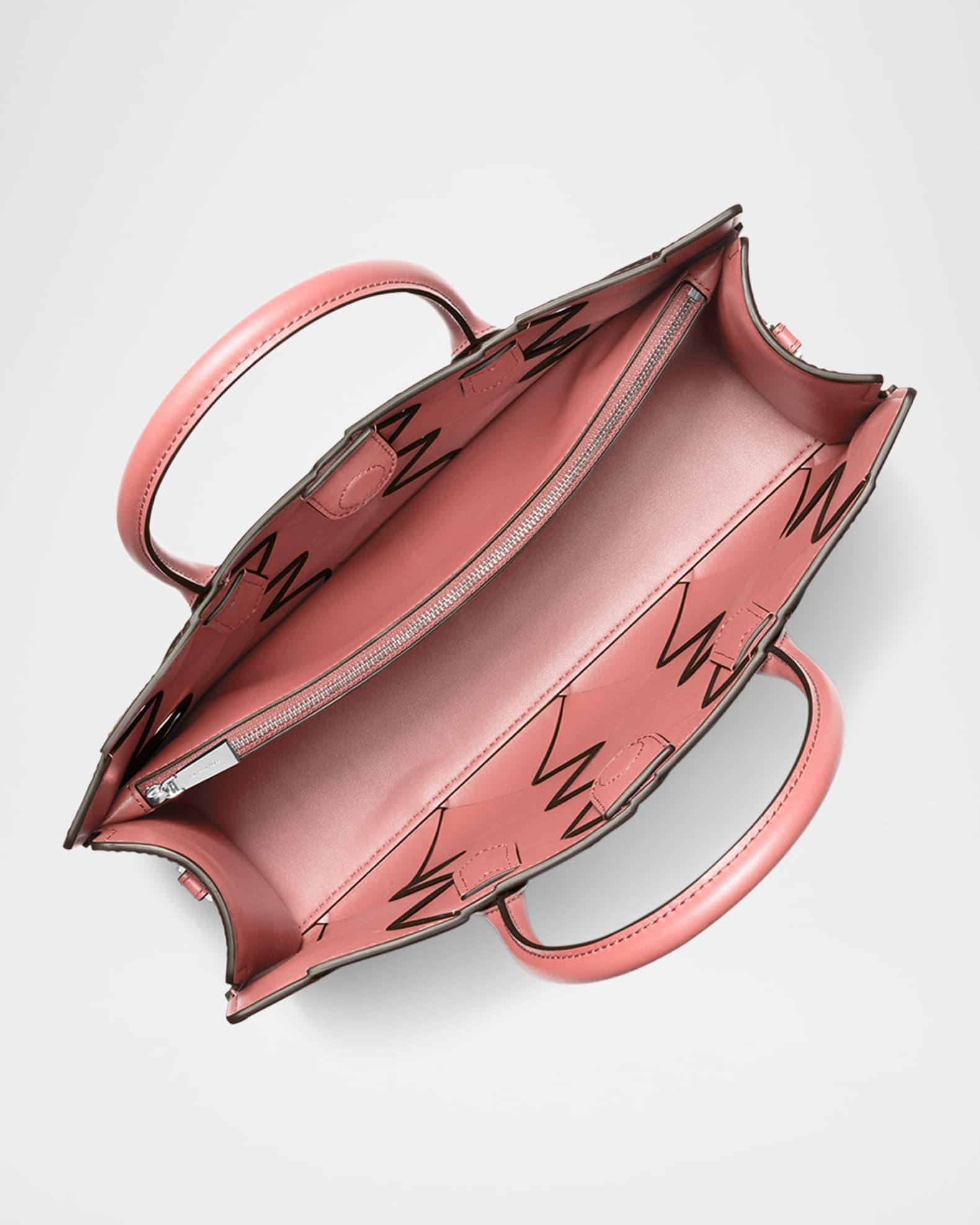 MICHAEL Michael Kors "Scarlett" satchel bag in woven leather Rolled top handles with keyring tag Open top with magnetic closure Interior, one zip compartment Lining: Polyester Feet protect bottom of bag Approx. 6"H x 13.8"W x 4.3"D Wipe clean Imported