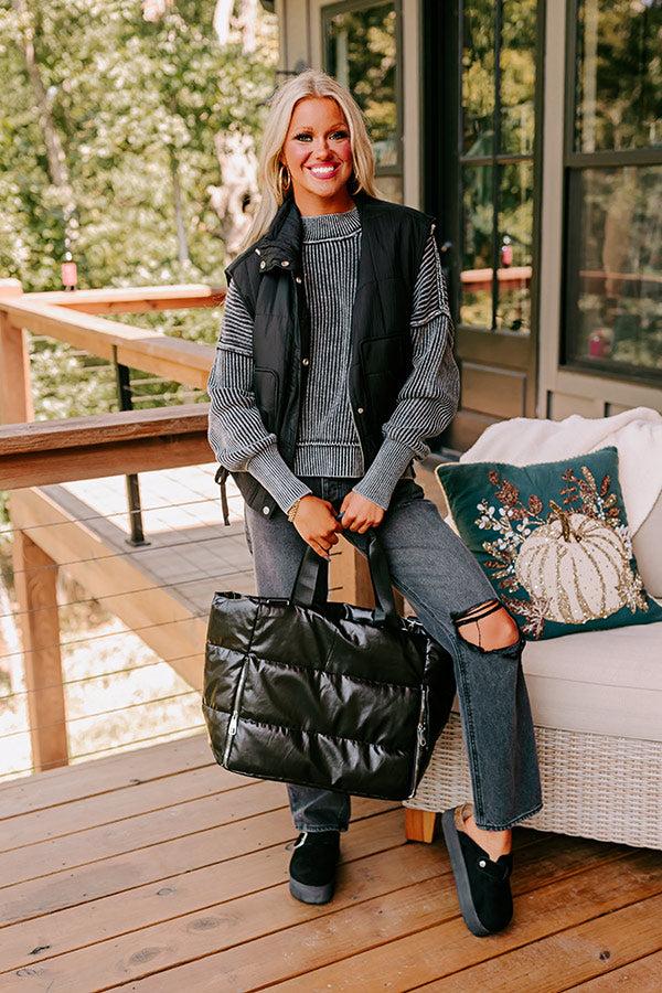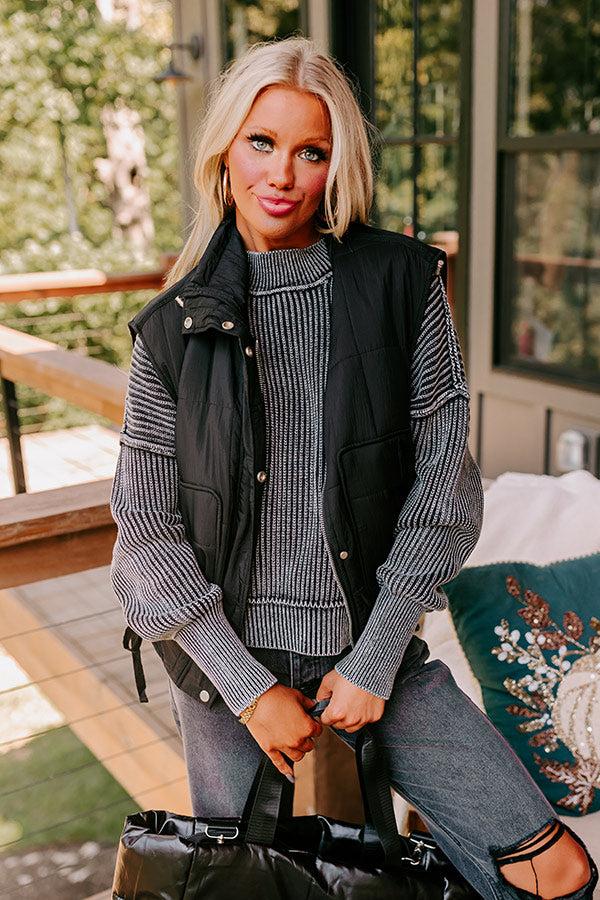 - Live your best lodge life in this cozy quilted vest! Whether you're hiking scenic trails or toasting marshmallows by the fire, this adorable piece keeps you cute and cozy for all the cool days ahead. - Fully lined, sleek quilted material - A collared neckline with a functional drawstring and button closure - Hidden button and zip closure - A sleeveless cut - Functional side pockets - A puffy silhouette that ends in a straight hemline with a functional drawstring