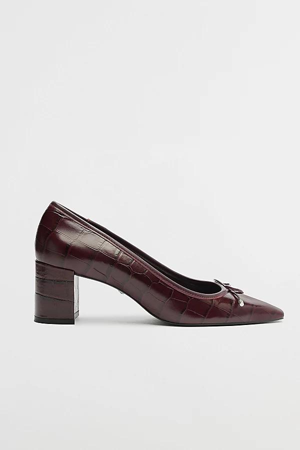 Our Arissas are taking it up a notch with their block heel pumps this season! Made from croco-embossed leather, showcasing their traditional bow and almond-shaped toe, these low pumps are here to make you look chic and office-ready for your next big meeting.
