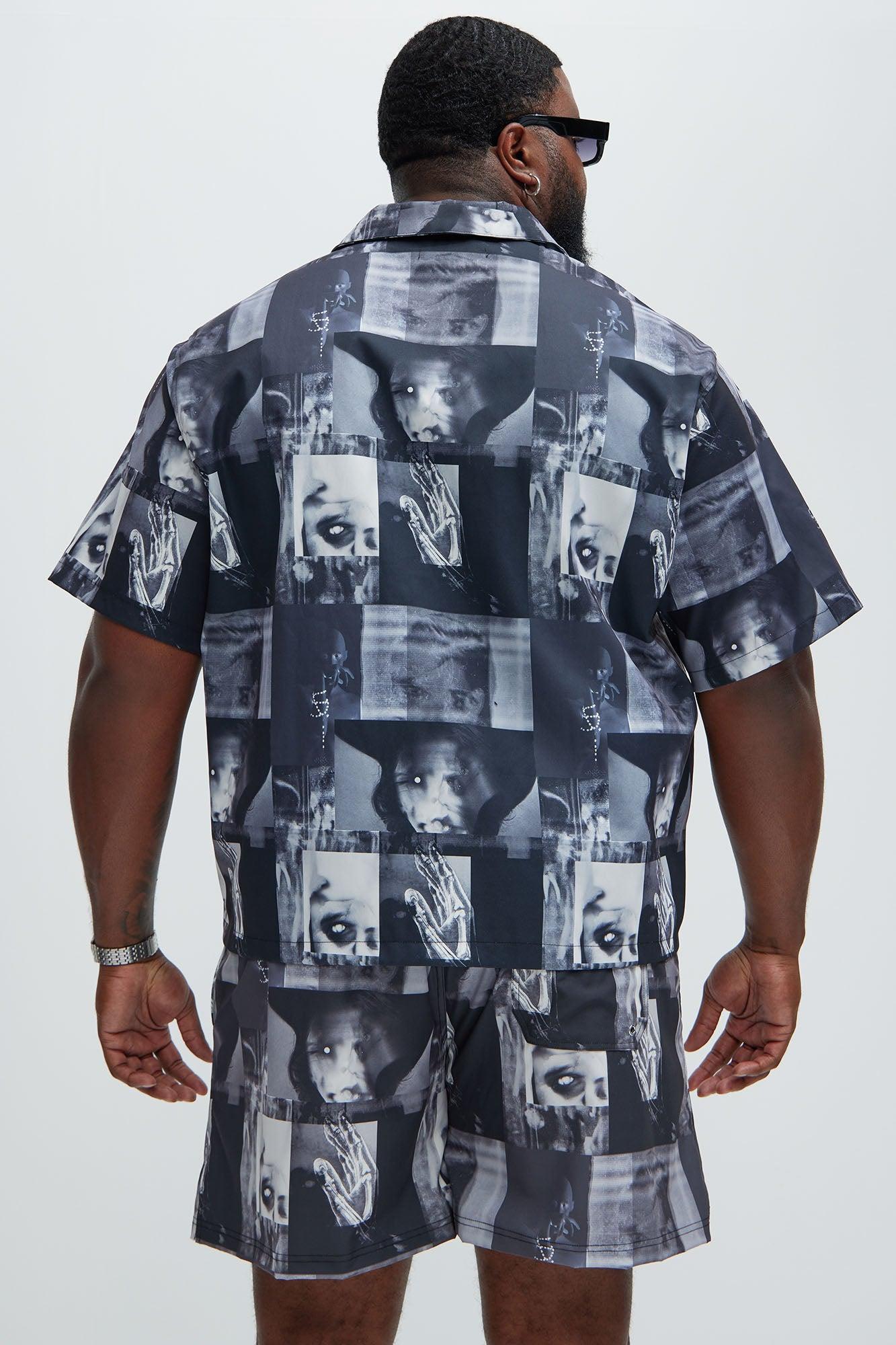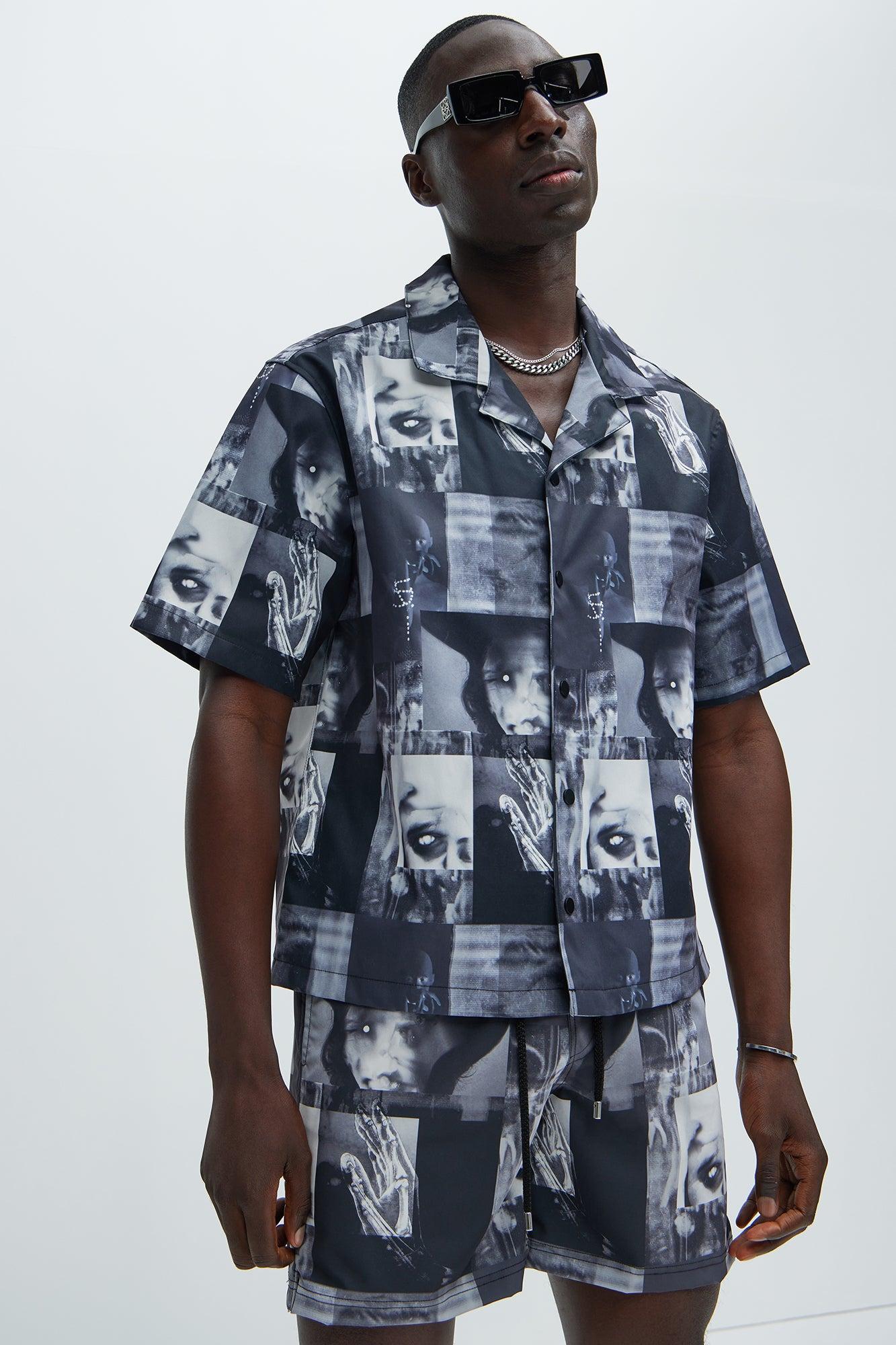 Available In Black/combo. Fold Down Collar Front Button Closure Short Sleeve Pair With Scissorhands Swim Trunks Disclaimer: Print Placement May Vary. Shell: 100% Polyester Imported California Proposition 65 WARNING: Cancer and Reproductive Harm - www.P65Warnings.ca.gov.