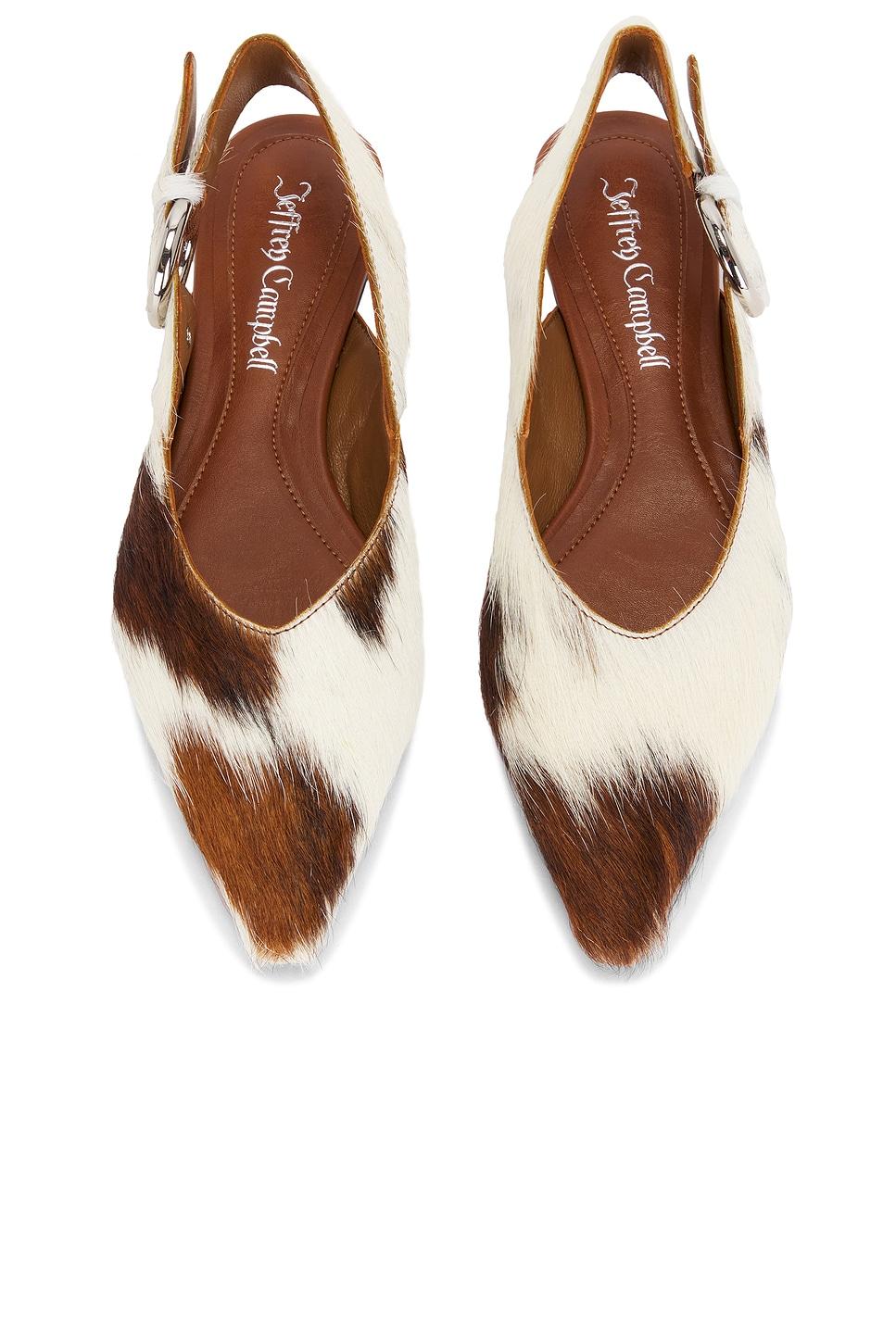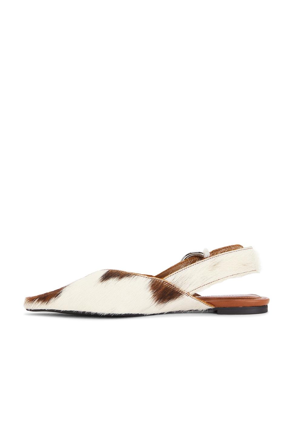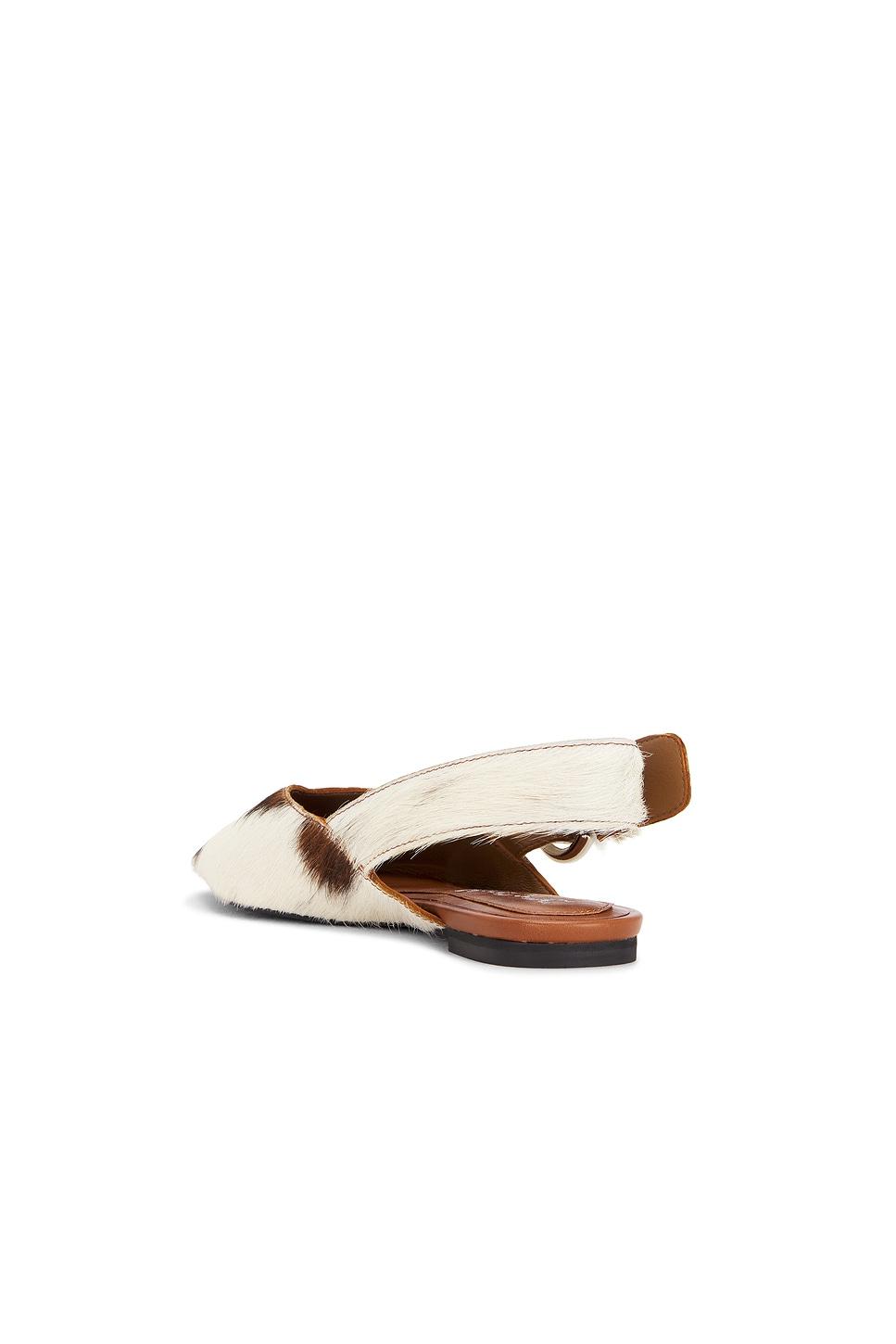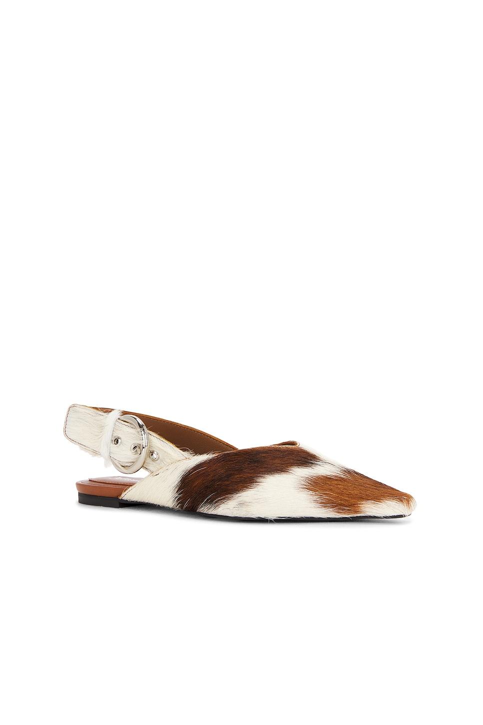Dyed cow fur upper with rubber sole. Fur Origin: China. Slip-on styling with adjustable heel strap. Silver-tone lettering on footbed. Pointed toe. This item is not available for international export. This product contains animal fur and may be subject to shipping restrictions based on your address at checkout. Made in China. Revolve Style No. JCAM-WZ2096. Manufacturer Style No. SCONE-F.