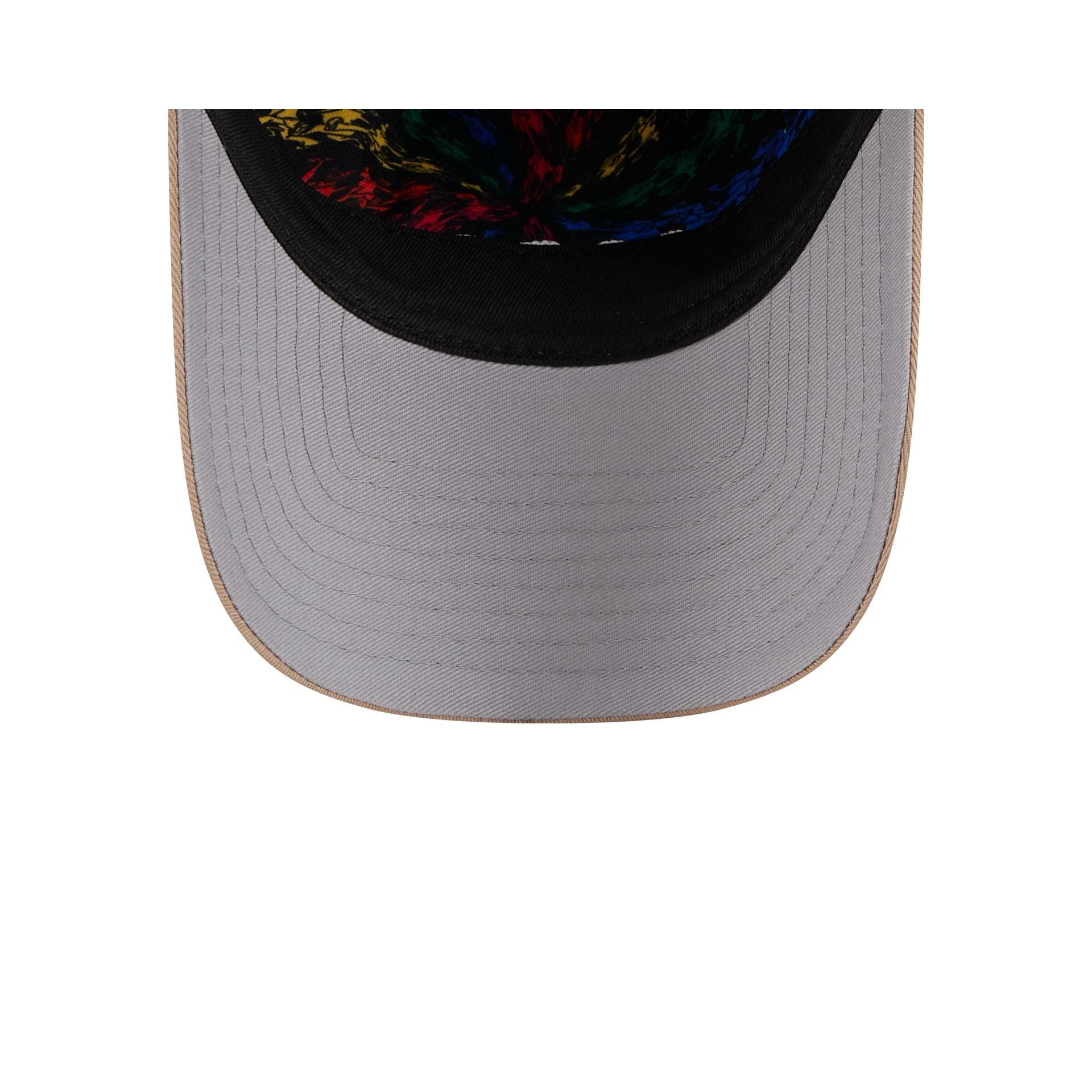 The Scooby-Doo Scooby Snacks 9TWENTY A-Frame Adjustable Cap features a groovy Scooby-Doo patch at the front panels with a Scooby Snacks logo at the visor and rainbow patch at the right-wear side. Additional details include embroidered flowers and peace sign through out the cap, a gray undervisor, and an adjustable D-Ring closure at the rear.