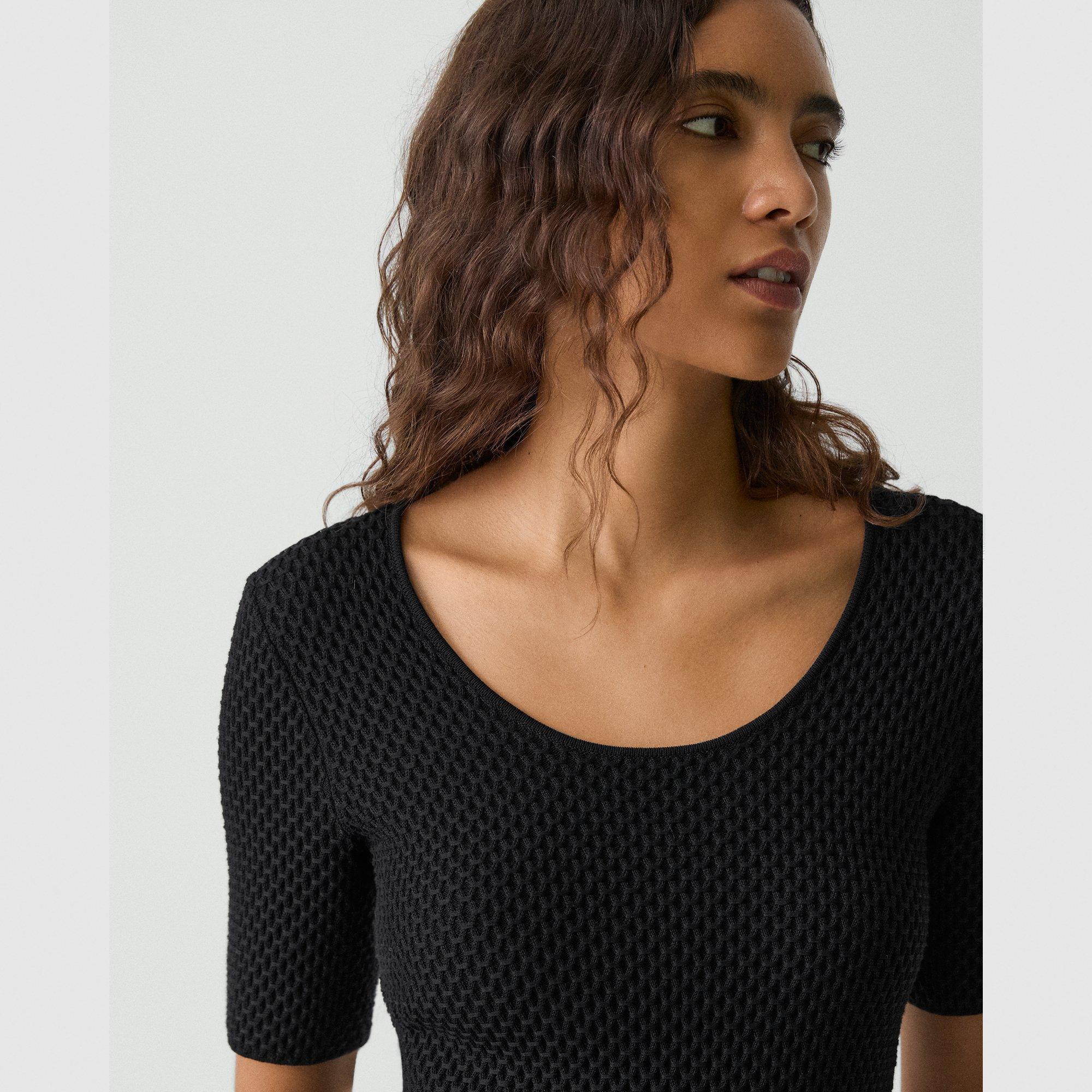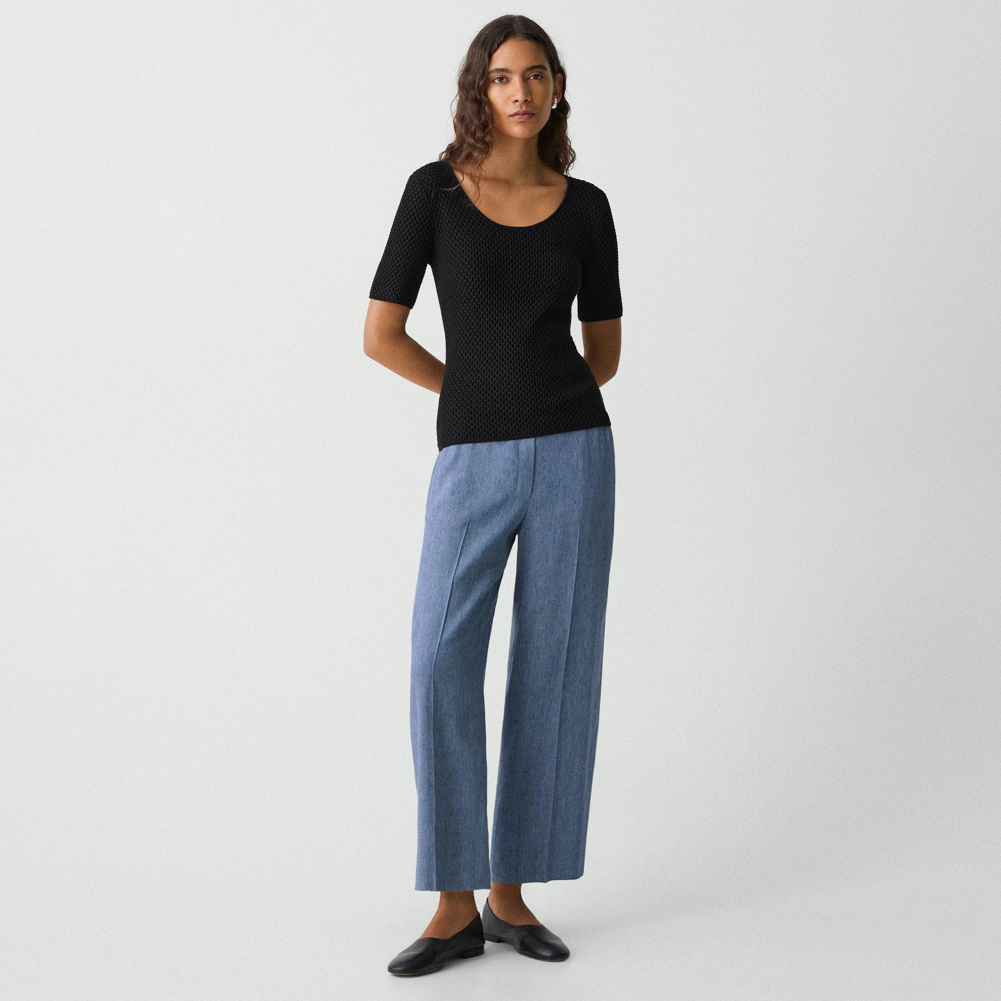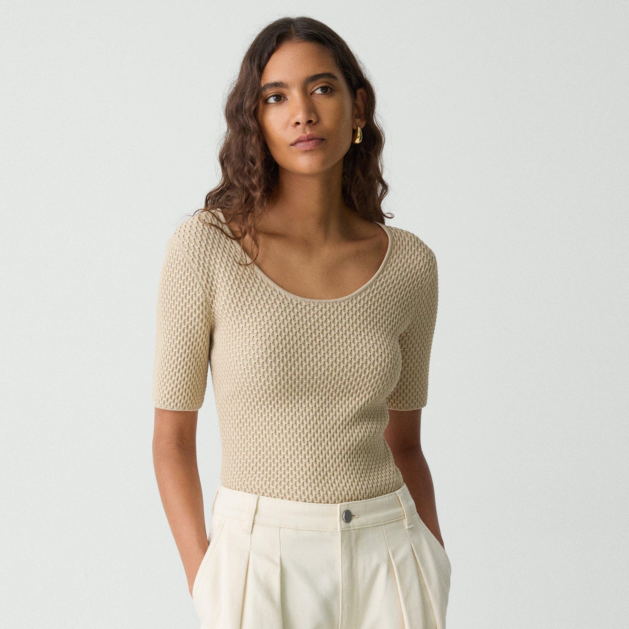 Scoop Neck Top in Textured Cotton-Blend | Theory