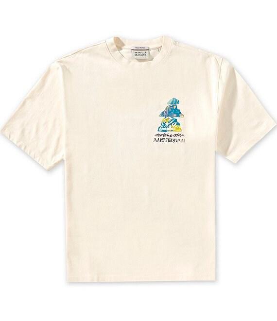 From Scotch & Soda, this t-shirt features: Crew neck Short sleeves Graphic artwork screen printed on the front of the left chest Graphic artwork screen printed on the center back Loose fit Pullover construction Cotton Machine wash/line dry Imported.