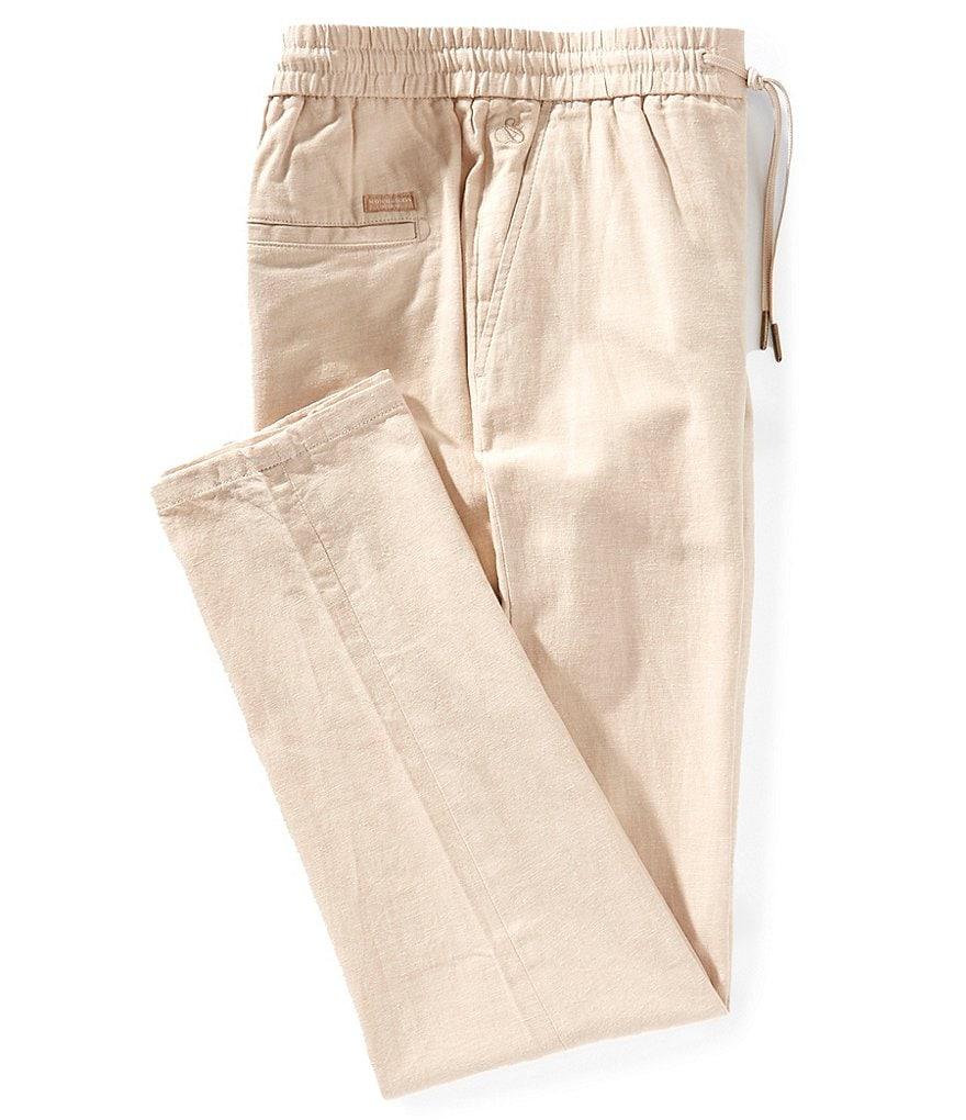 From Scotch & Soda, these pants features: Regular fit Flat front Front drawstring Zip fly with button closure 2 front pockets 2 back pockets Cotton/linen Hand wash/tumble dry low Imported.