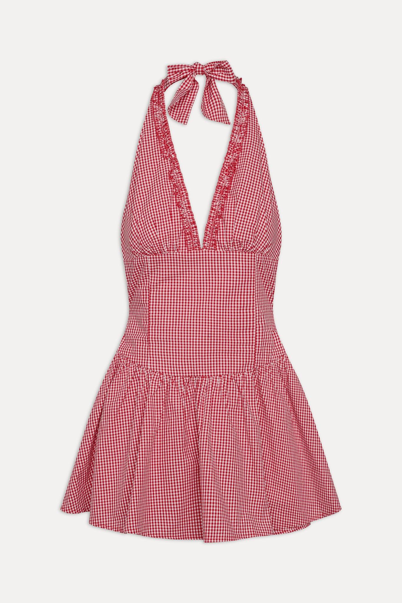 Introducing your new picnic date go-to. The Scout mini dress is designed in Picnic Basket gingham and cut in a halter mini silhouette. Breezy, lightweight, and undeniably charming, this dress is made for summer. Details 100% cotton gingham fabric Halter neckline with low v-front Buttons down the back Smocked at the back for fit flexibility Flouncy mini skirt