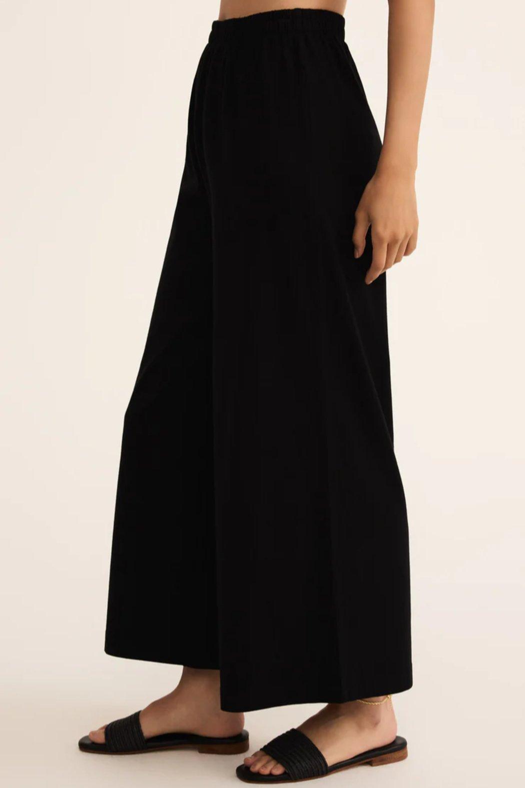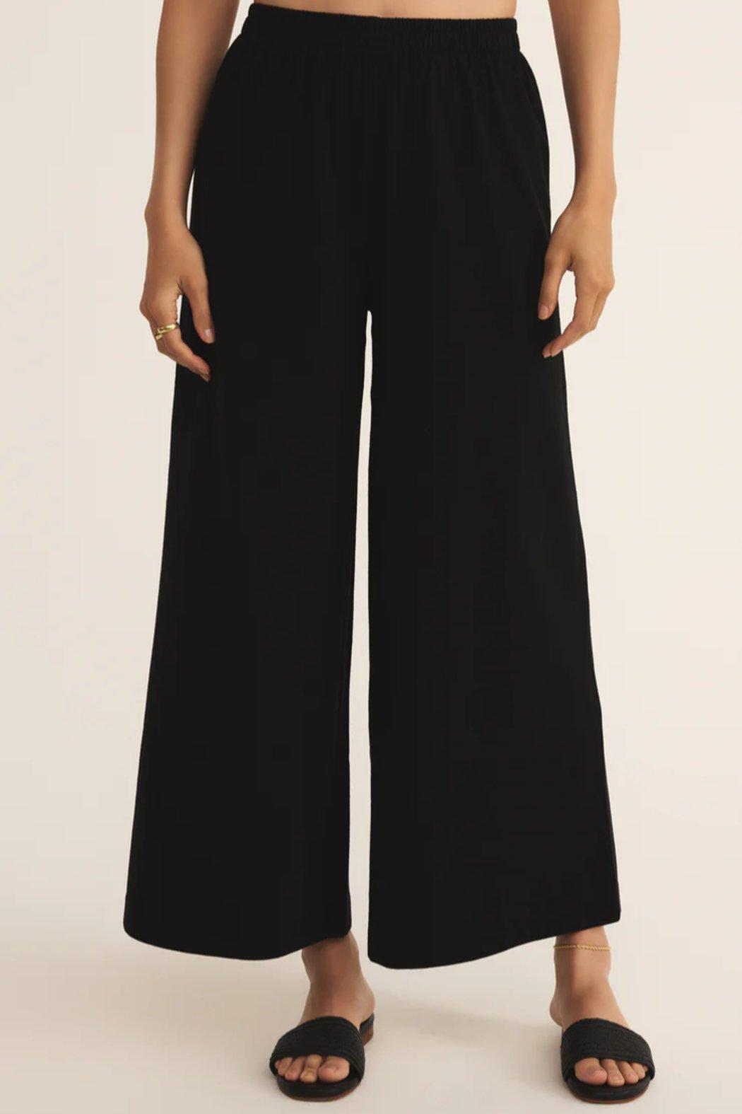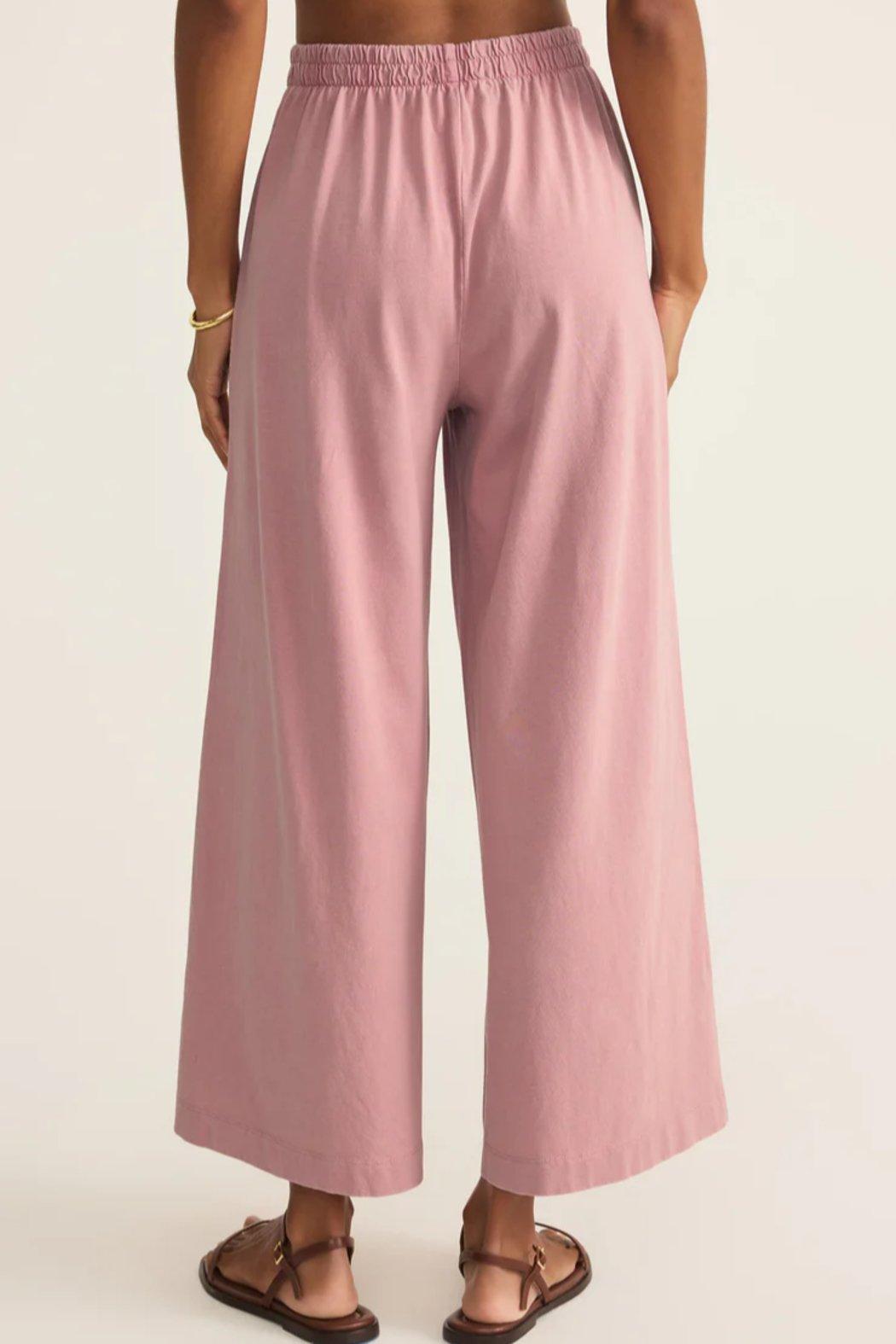 This flare pant is made with a 100% cotton jersey knit fabric and features a wide flare silhouette with an elastic waistband. This pant is a relaxed but stylish piece that looks so good with any of our everyday tops.