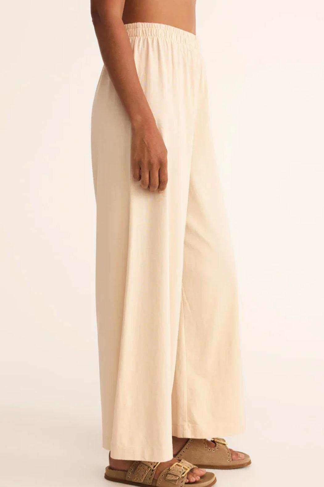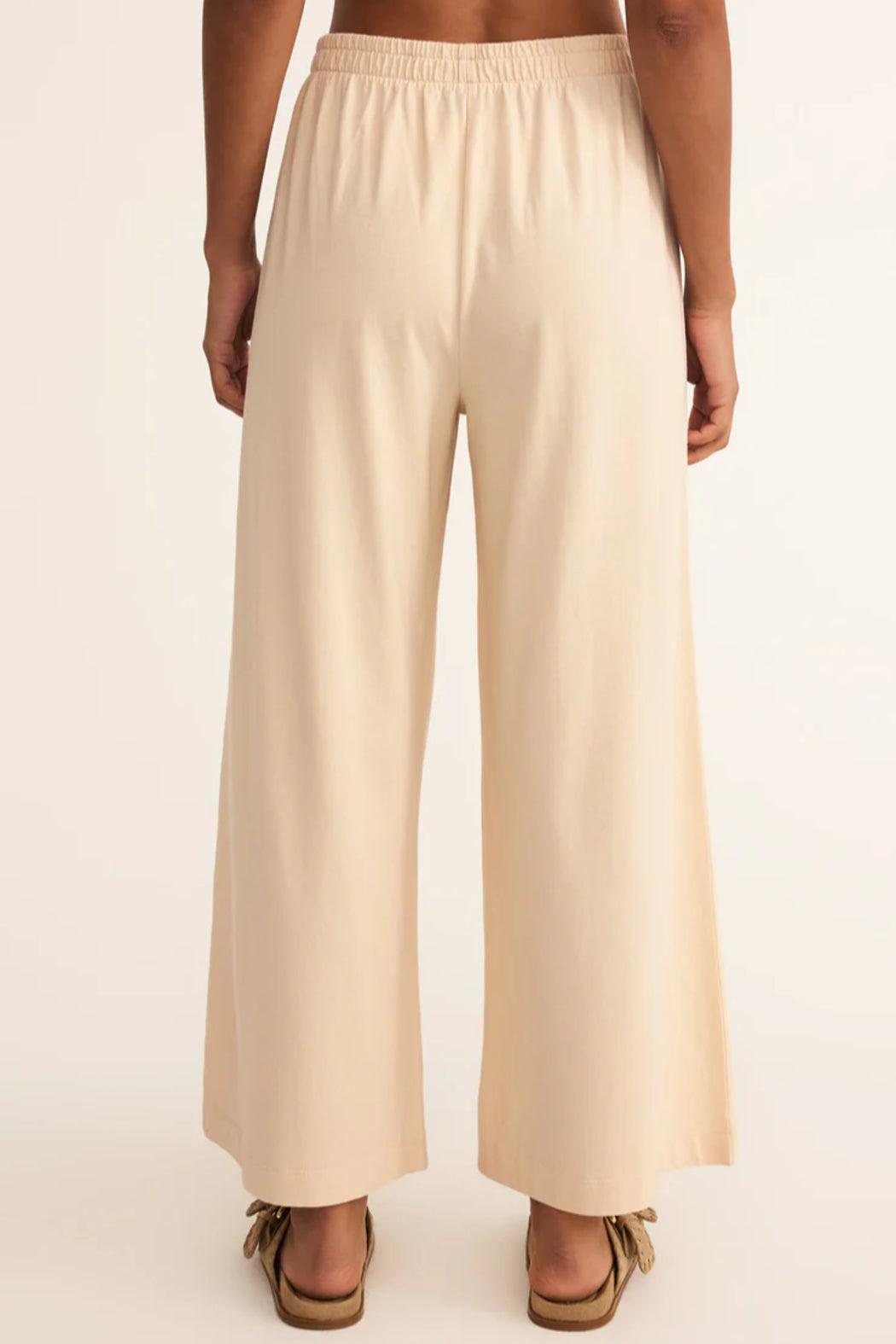 This flare pant is made with a 100% cotton jersey knit fabric and features a wide flare silhouette with an elastic waistband. This pant is a relaxed but stylish piece that looks so good with any of our everyday tops.