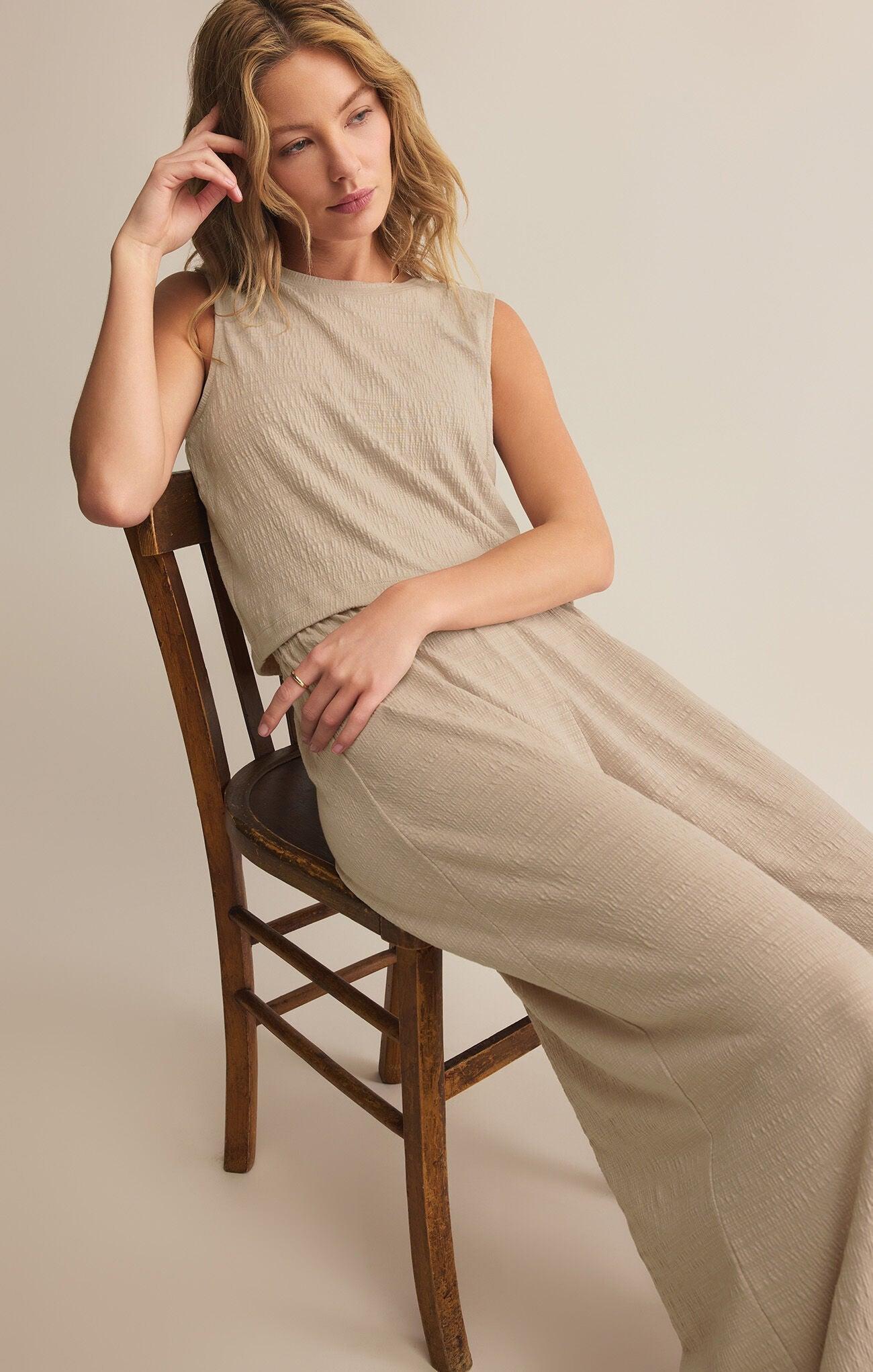Crafted from textured slub knit fabric, these high-rise, wide-leg pants are as breezy as they are chic. With an elastic waistband, they’re ankle-length perfection for easy, everyday wear.