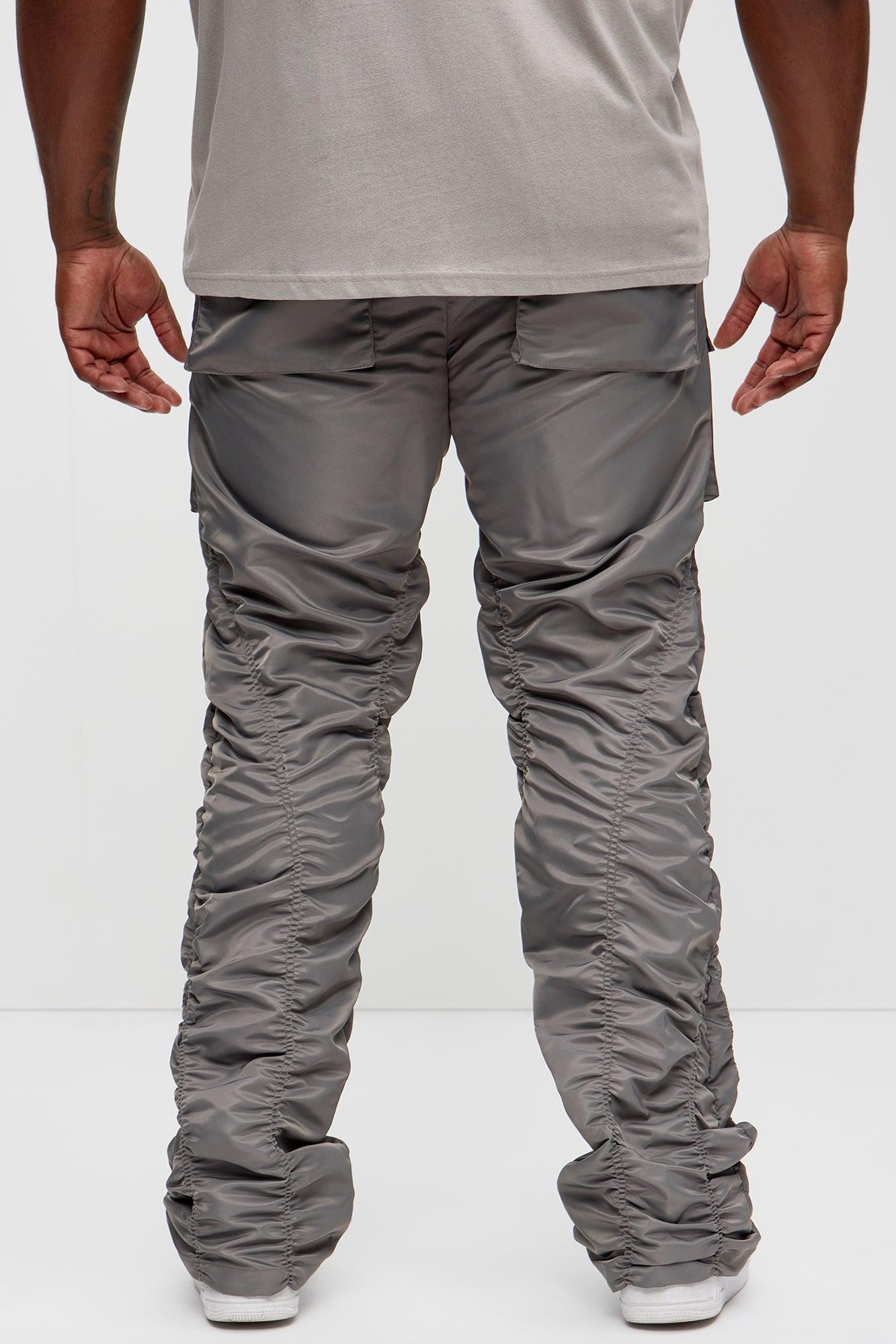 Scrunched Flared Nylon Cargo Pants - Charcoal