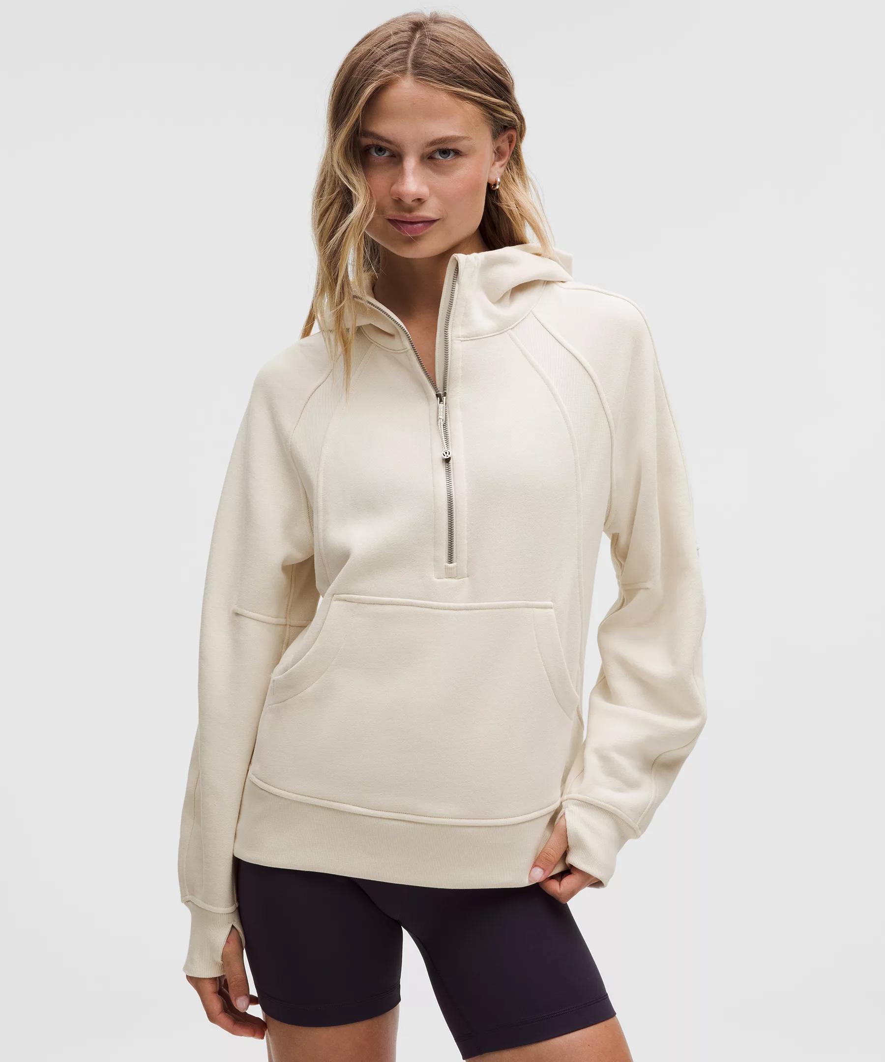 Serious about softness. This Scuba half-zip hoodie is all about fleecy fabric, a cozy oversized fit, and a little extra length for coverage.