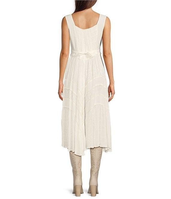 Scully Sleeveless Lace-Up Embroidered Floral Jacquard Tie Waist Midi Dress