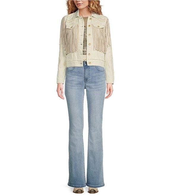 Scully Western Embroidered and Fringe Detailed Western Denim Jean Statement Jacket