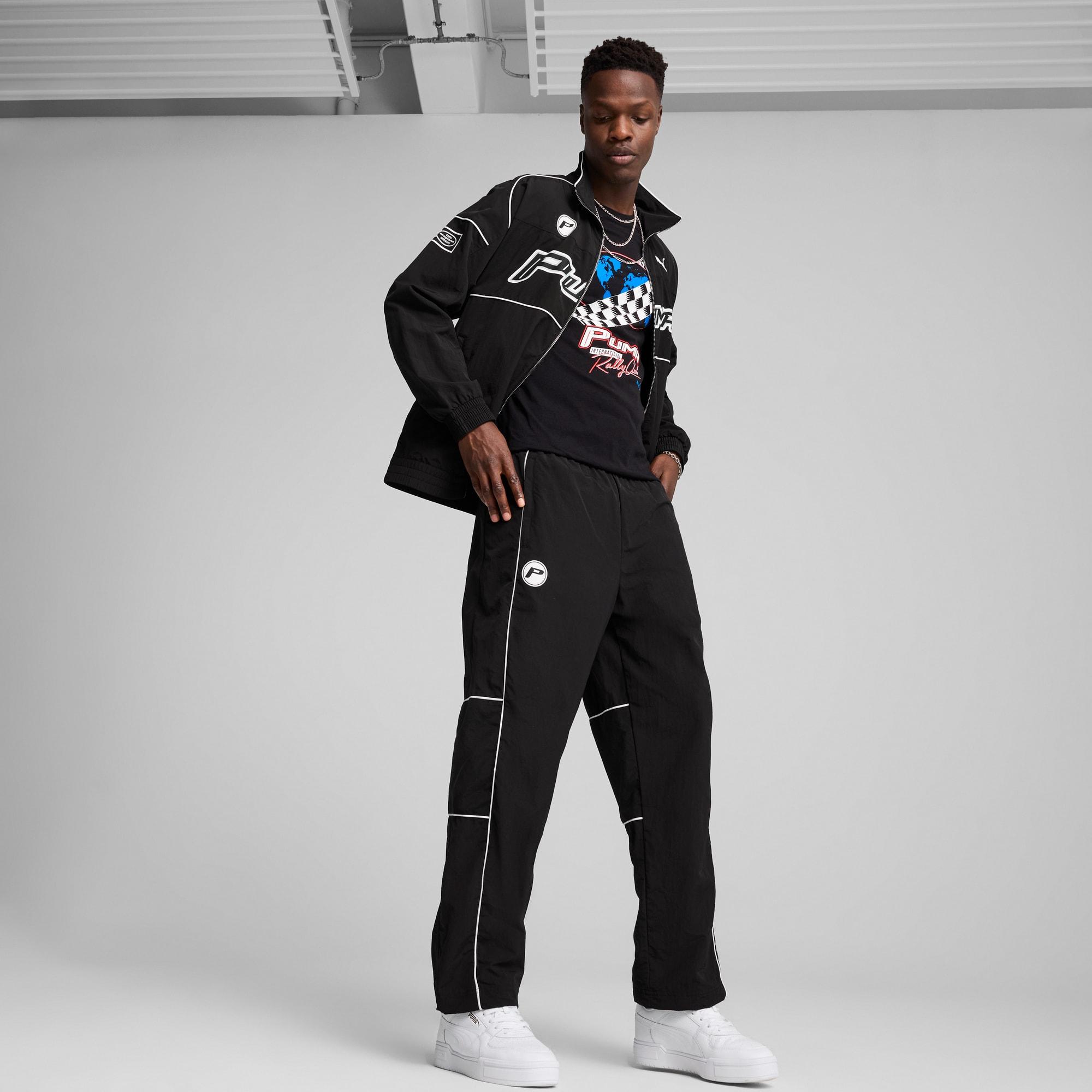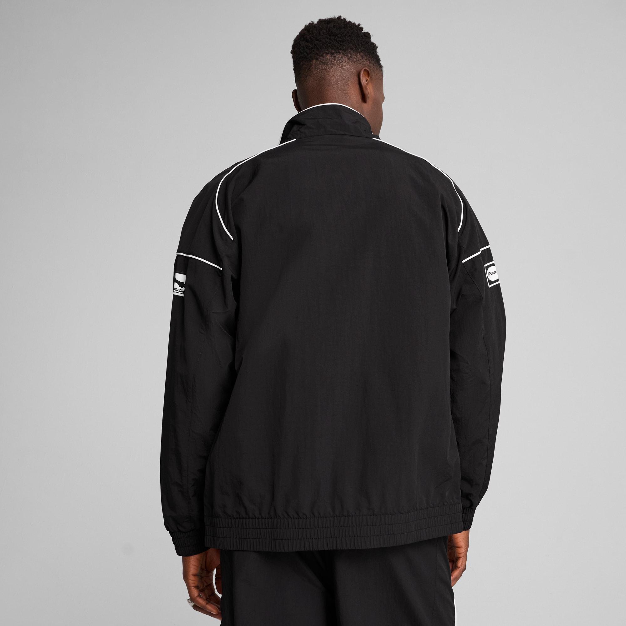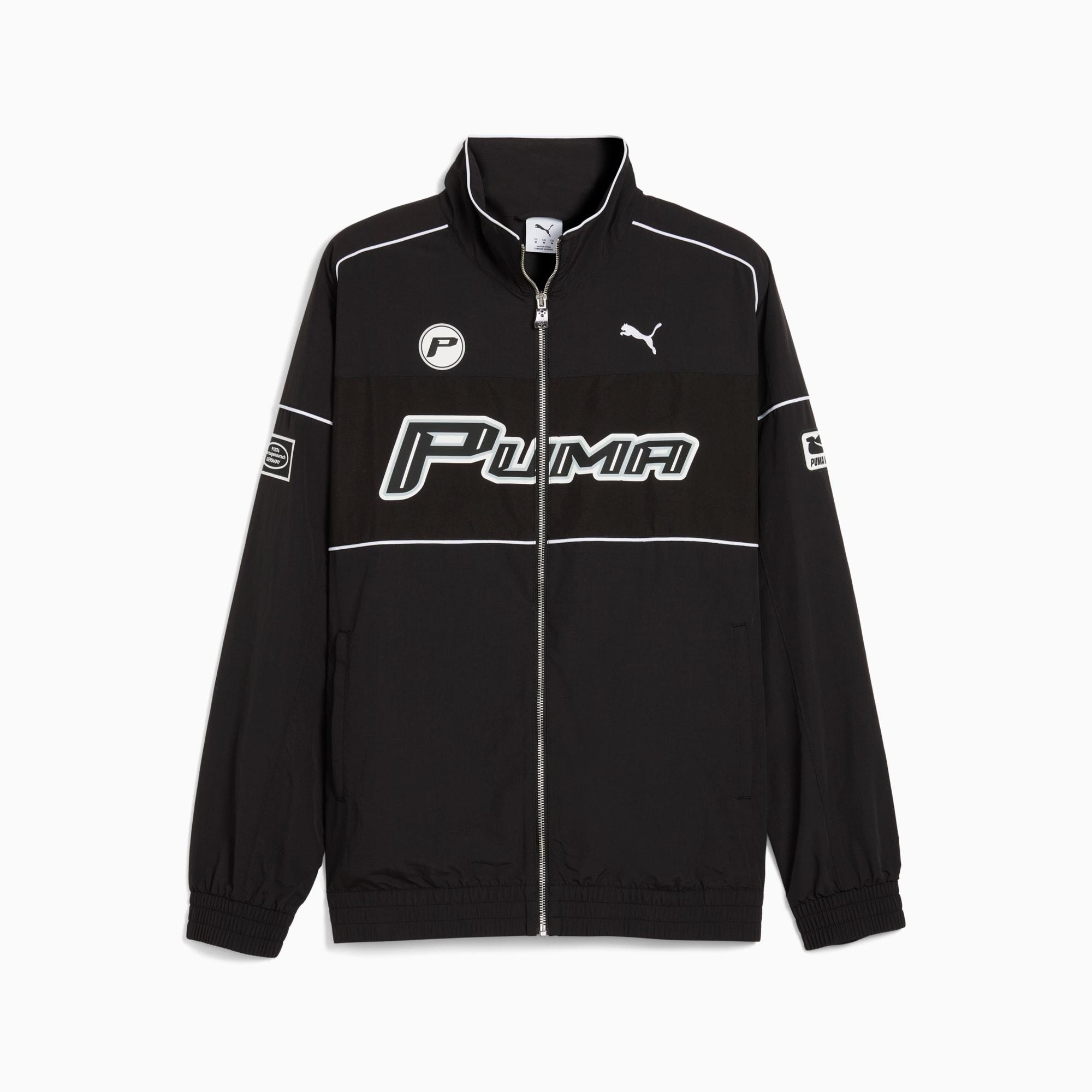 Step up your game with this PUMA track jacket. Featuring bold graphics, secure zipper pockets, and elastic cuffs, it's designed for those who love to make a statement. Feel the energy, embrace the vibe, and own your look.Made with 100% recycled material excluding trims & decorationswindCELL: Technology designed to protect against the wind and keep you comfortable during exerciseRelaxed fitPlain weave fabricStandard jacket lengthStand up collarFull zip closureLong sleeves