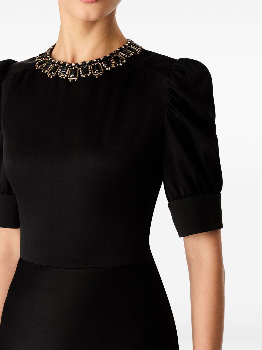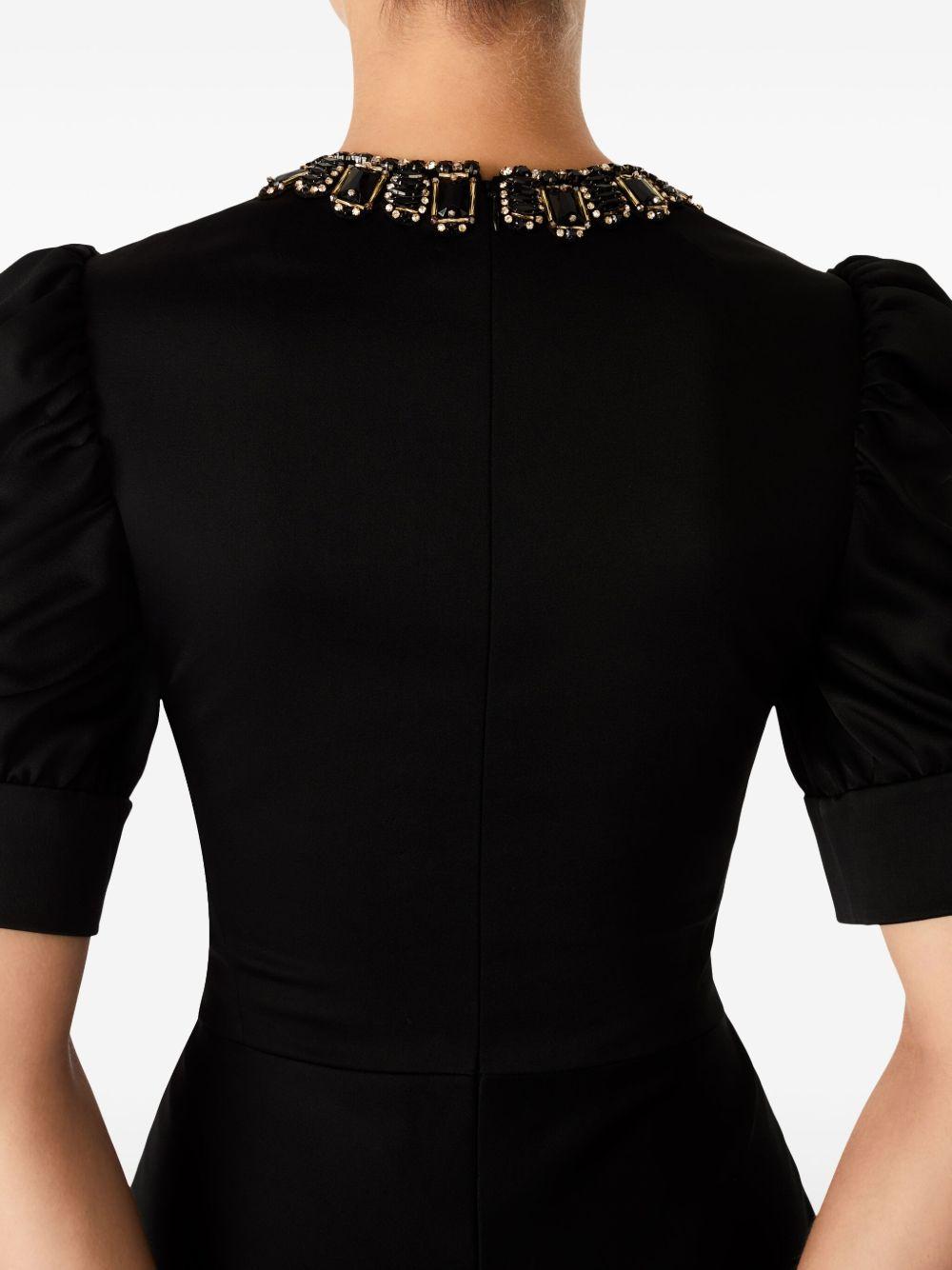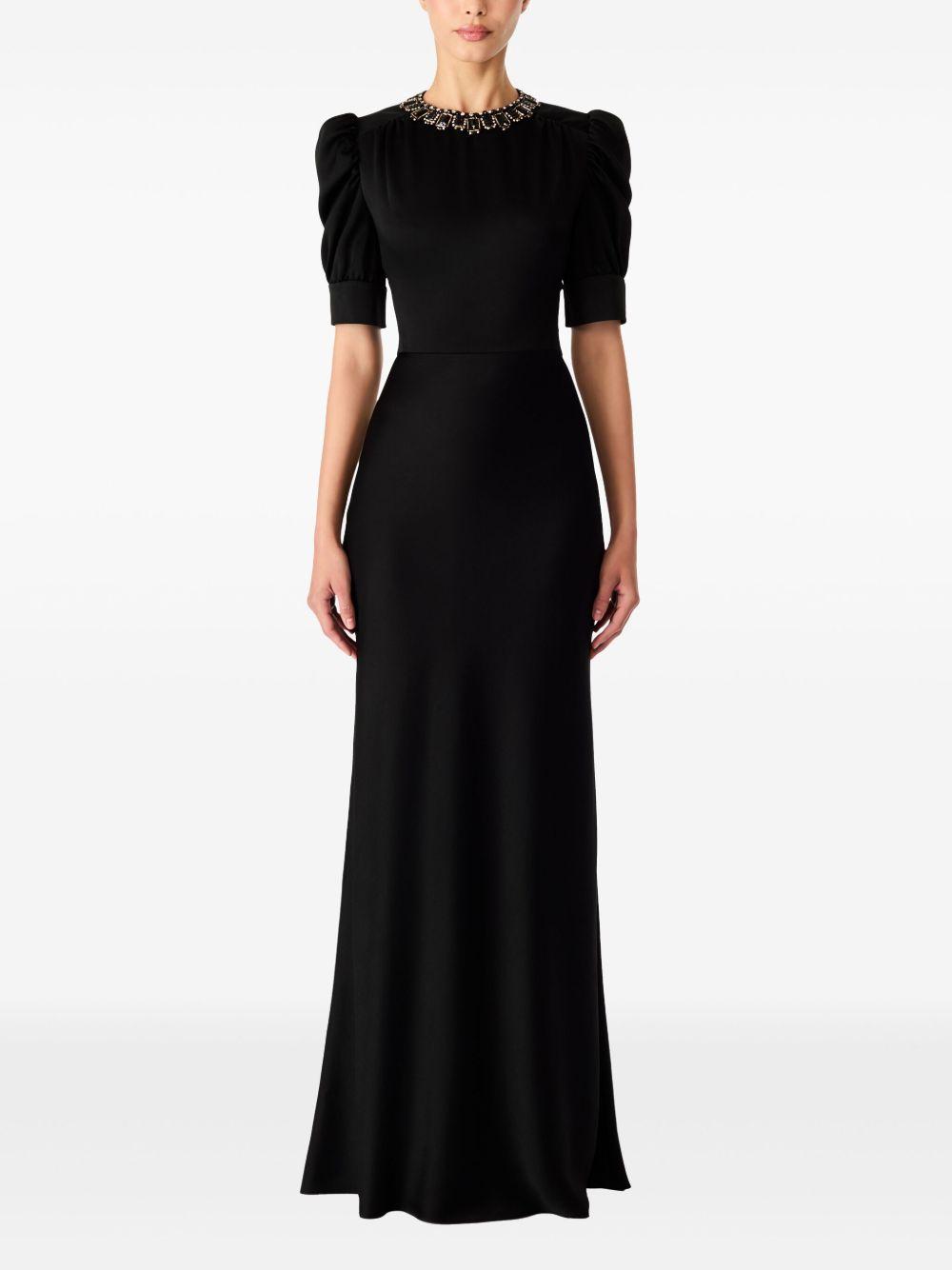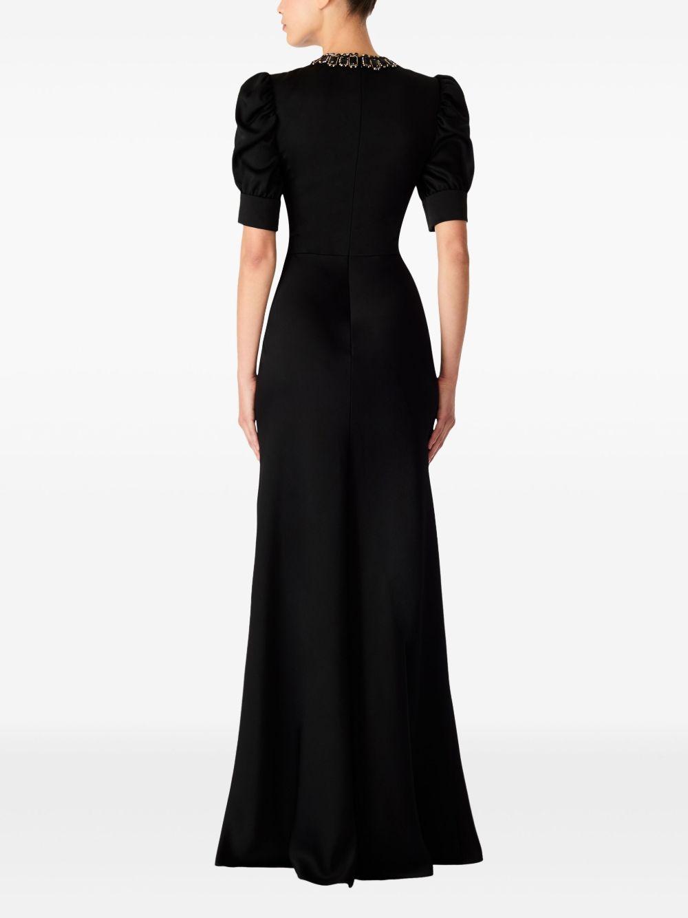 Jenny Packham Sea Daisy gown | Black | black | concealed rear zip fastening | gemstone detailing | round neck | short puff sleeves | Viscose/Acetate | Evening Dresses | Dresses | Clothing | Women