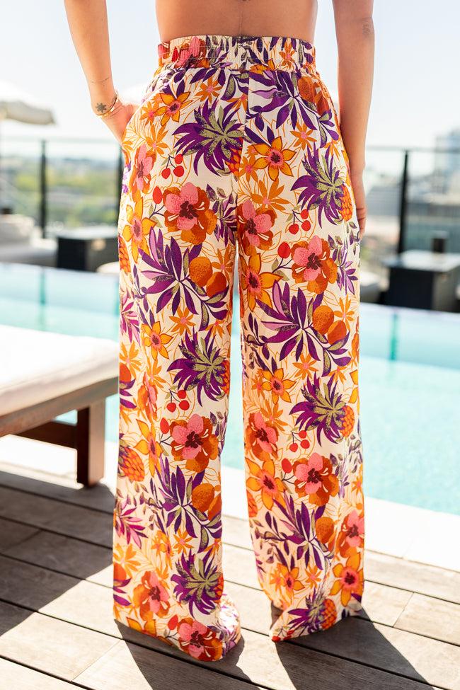 Details Printed Coverup Pant Fabric has no stretch Elastic waistband, functional pockets Unlined Size small inseam: 30.5" Material and Care 100% polyester Machine wash cold, no drum drying Patterns may vary Materials may have natural variations Colors may vary from different viewing devices.