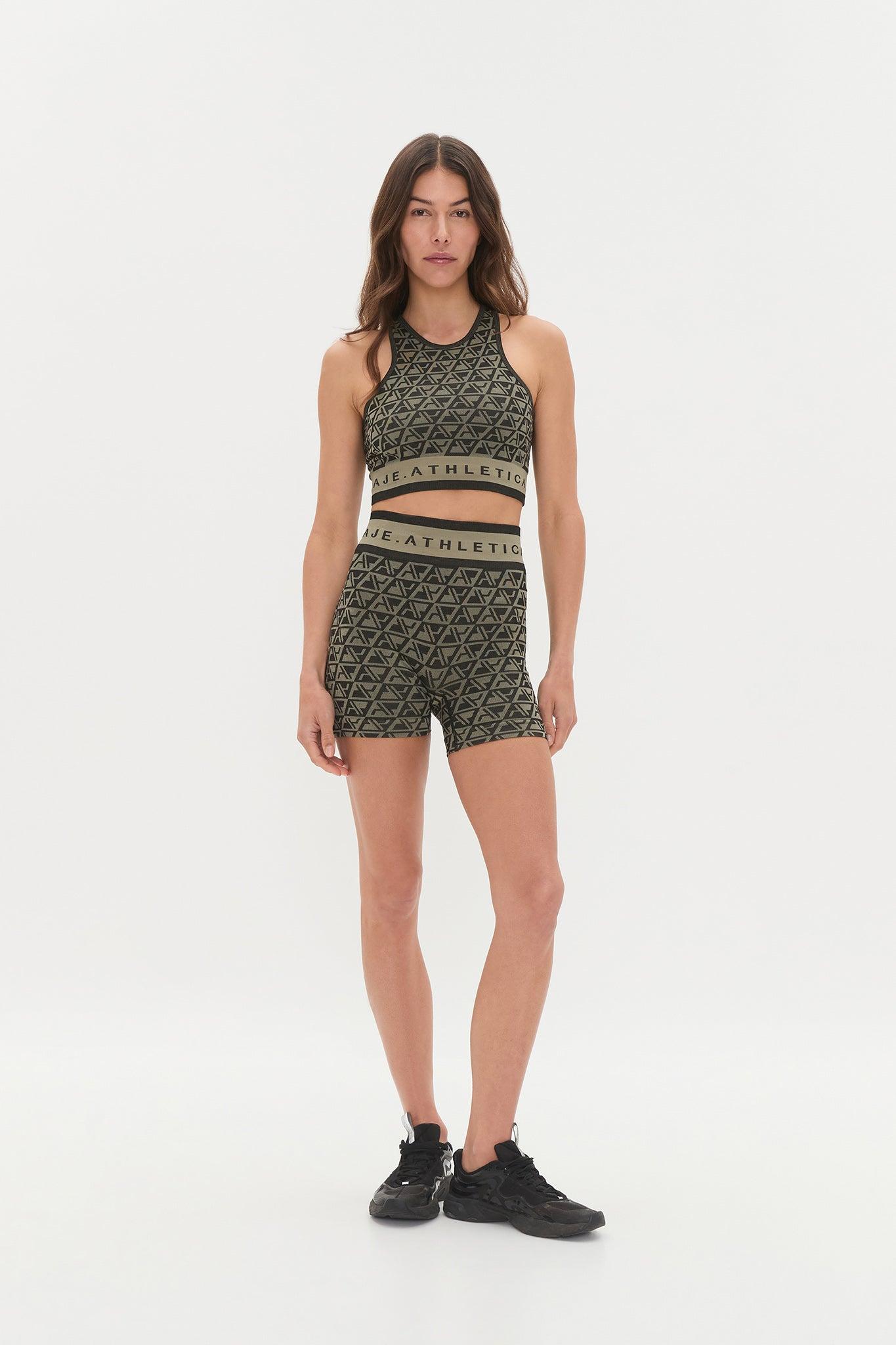 Seamless Crop Top 331-GEO PRINT/KHAKI / XXS/XS
