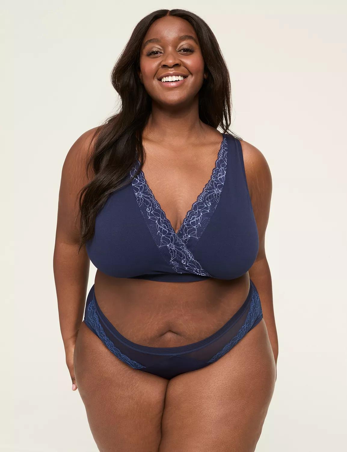 Available in Plus Size A seamless, no-wire bralette thats all about natural comfort. We added gorgeous lace-trim for extra flair. FIT: Seamless bralette Medium coverage Unlined No-Wire No closure, pull-over styling FEATURES: Adjustable straps V-neck Lace trim Knit bottom band Crossover detail FABRIC: Double-layer knit fabric Hand Wash 72% Nylon/16% Polyester/12% Elastane FIND YOUR SIZE, BASED ON YOUR BRA SIZE(Designed for, may also work for)10/12 = 38B, 34DD, 36C-D14/16 = 38C, 40C, 38D-DD, 40B1