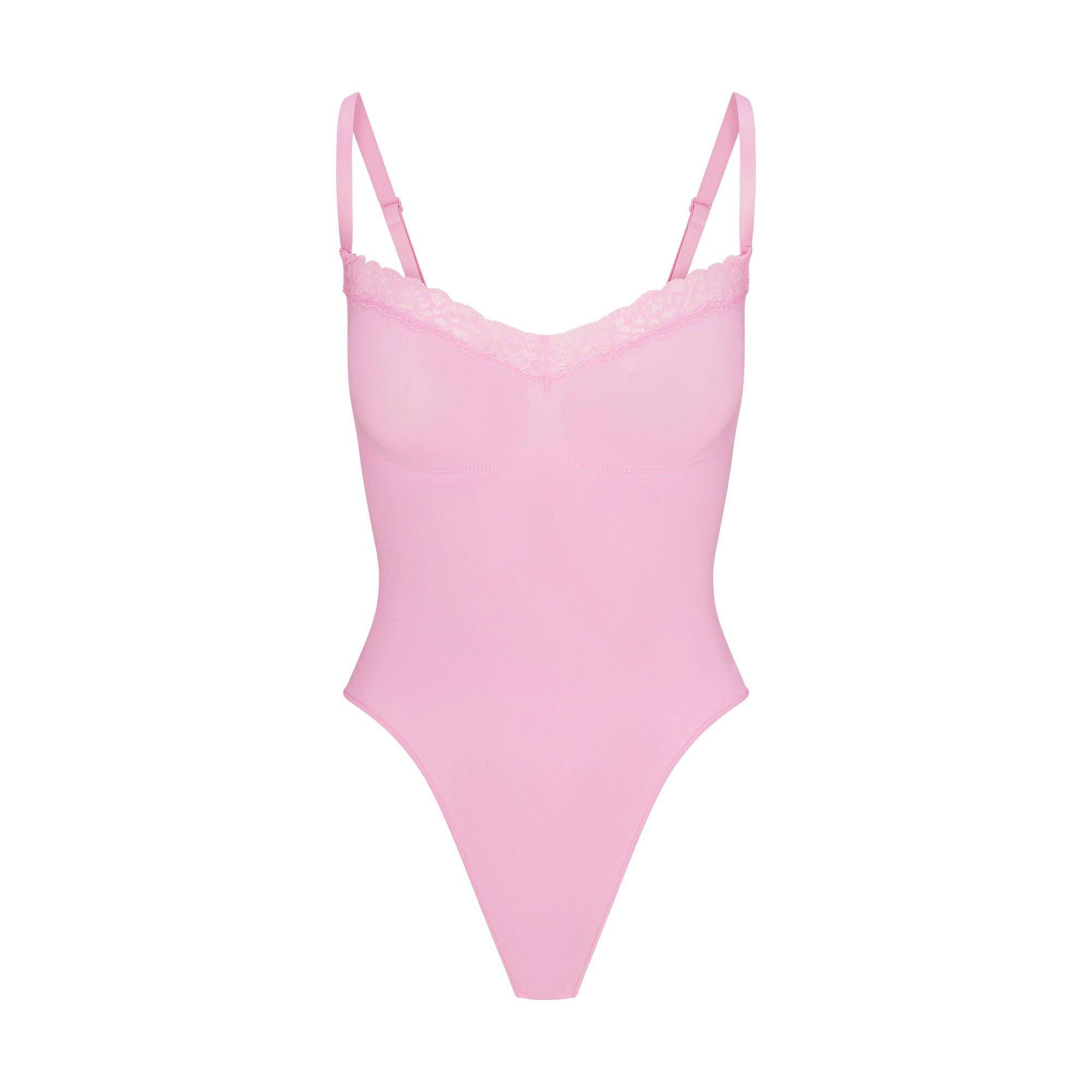 SEAMLESS SCULPT LACE THONG BODYSUIT | BUBBLE GUM
