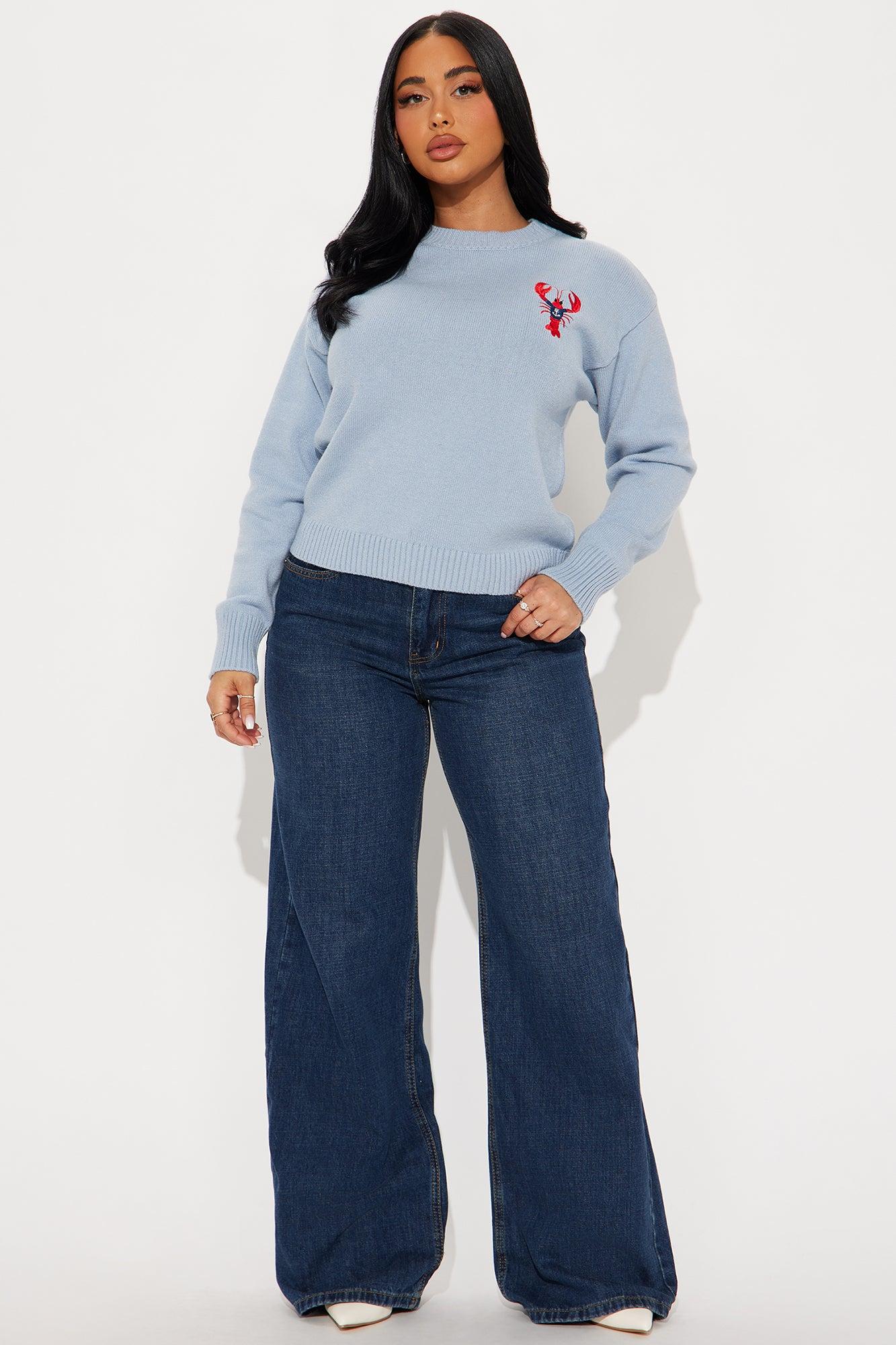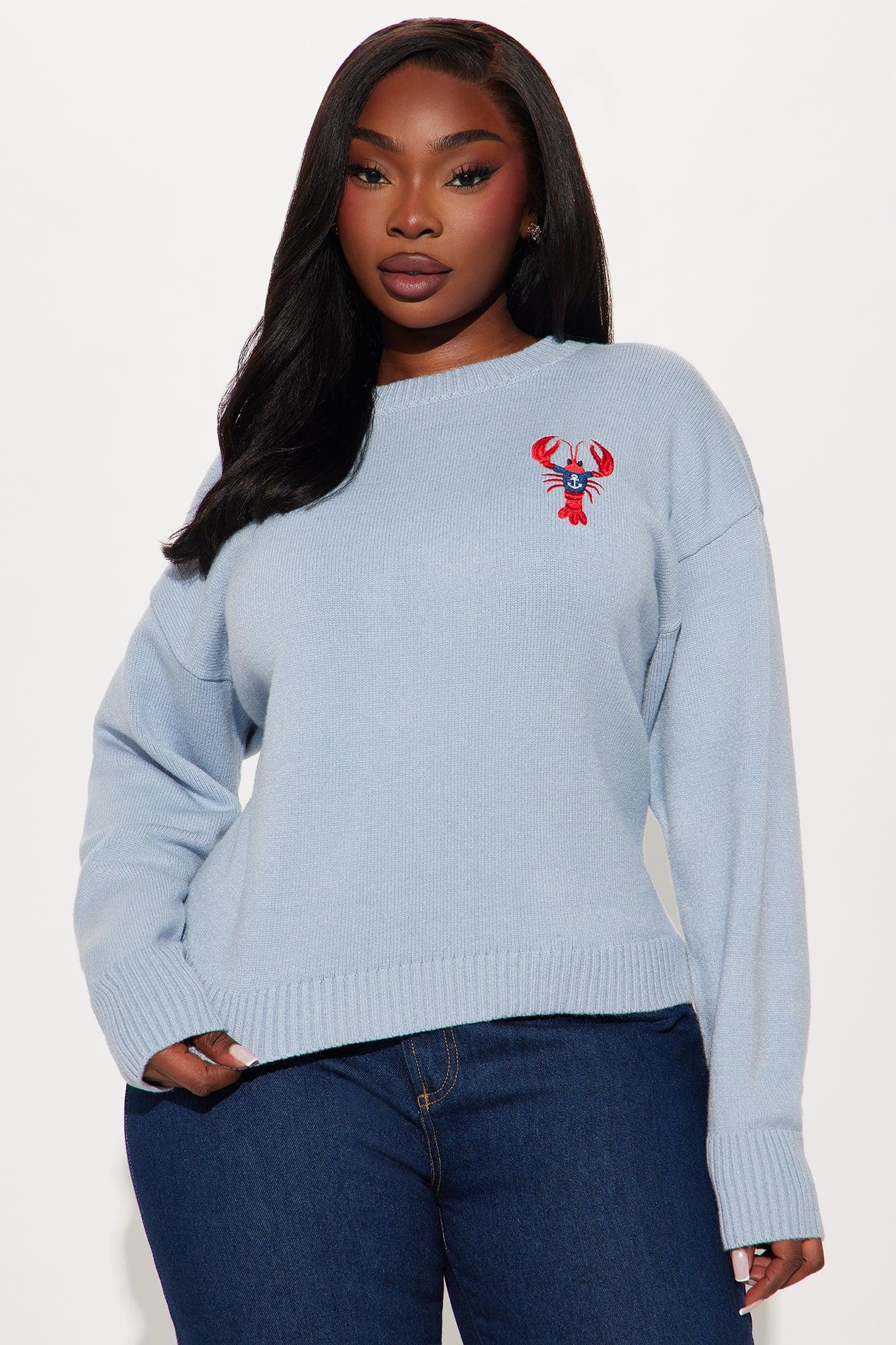 Available In Blue. Pullover Sweater Lobster Embroidery Imported 50% Rayon 30% Polyester 20% Nylon Long Sleeve