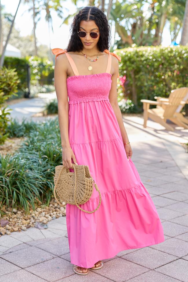 Season Of Bliss Pink Smocked Bust Maxi Dress
