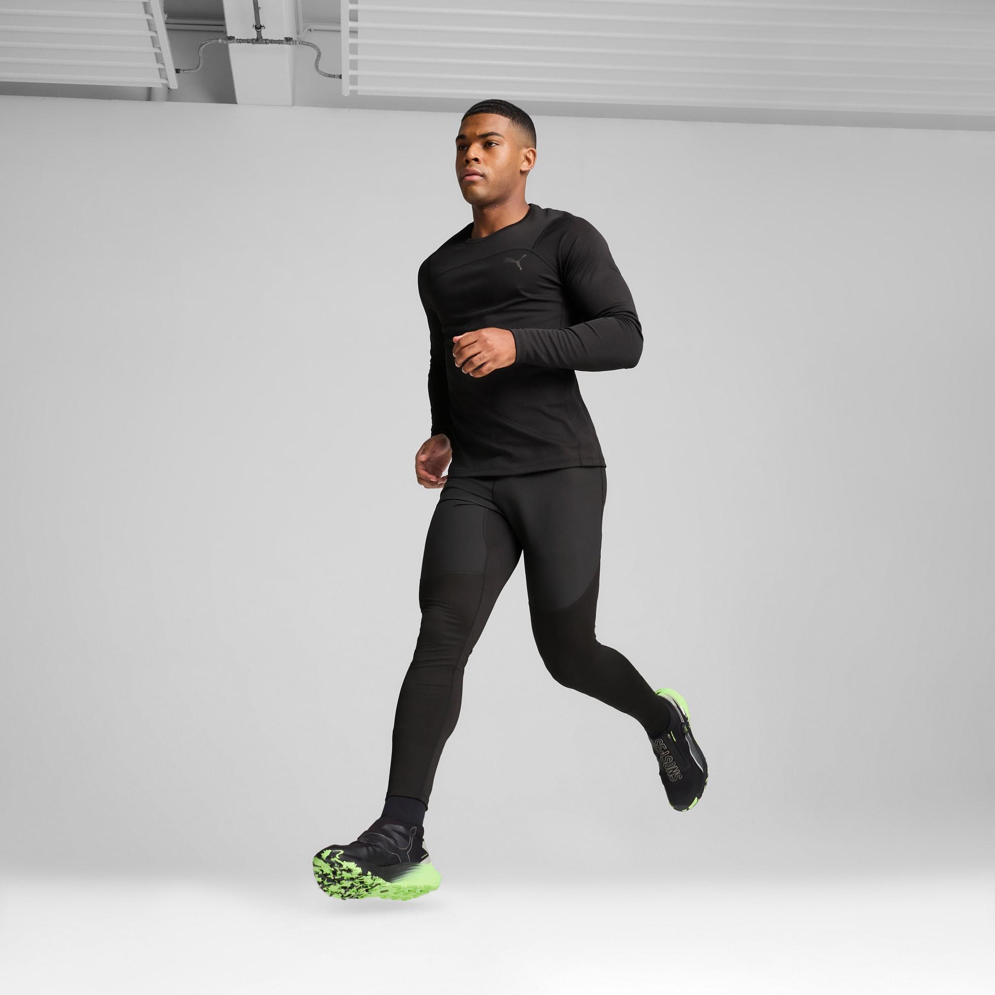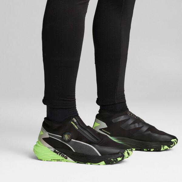 SEASONS Voyage NITRO⢠3 DISC is crafted for durability and comfort, offering a smooth and responsive ride with NITROFOAM⢠cushioning. The upper features PUMA DISC, an advanced fit system that allows you to achieve optimal lockdown with a quick dial turn. Tackle any terrain confidently, thanks to the 4mm PUMAGRIPATR lugs that provide exceptional grip and traction. | PUMA SEASONS Voyage NITRO⢠3 Disc Trail Running Men's Shoes in Black/Silver/Fizzy Apple, Size 7.5