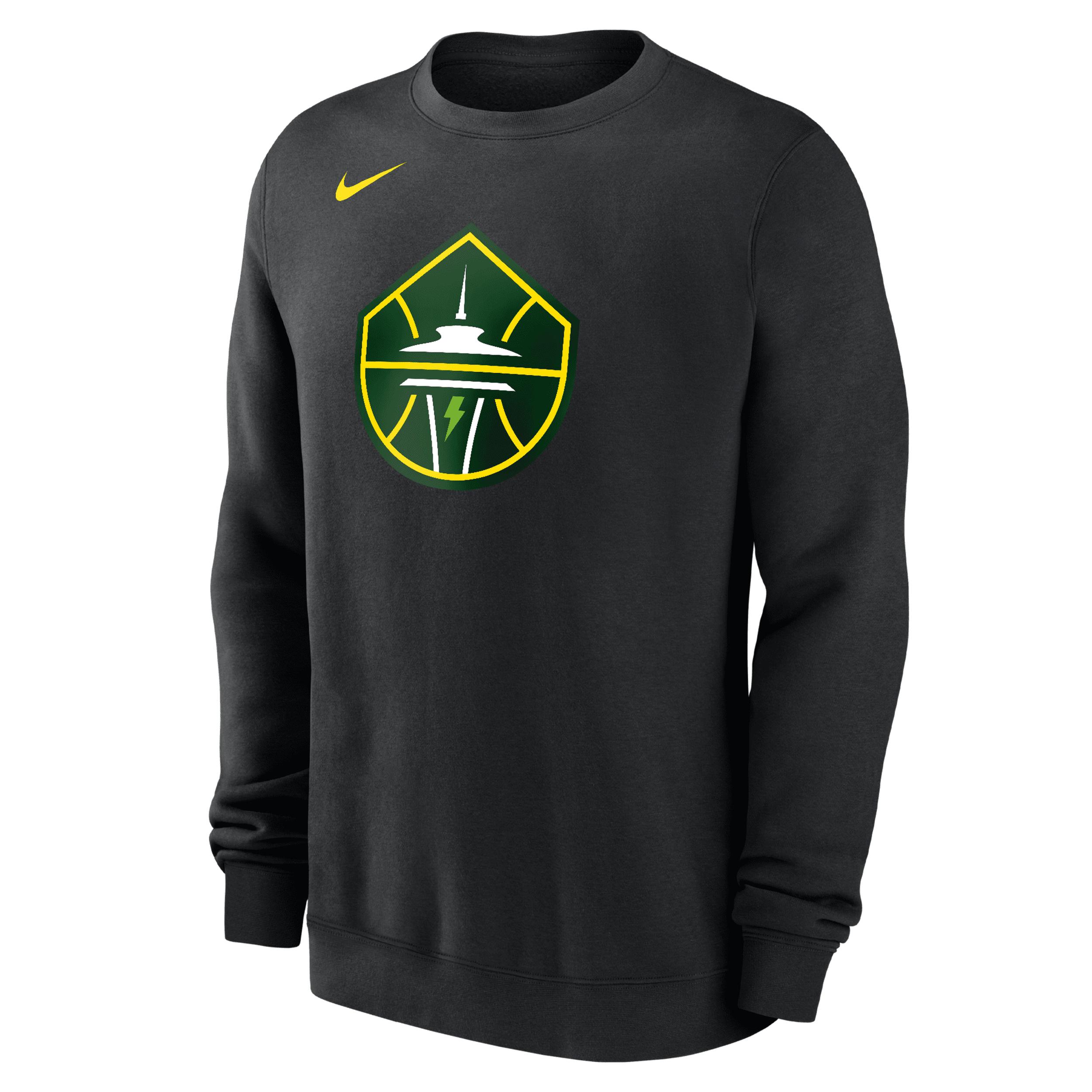 We took an everyday classic and infused it with team pride to create an easy-fitting staple you'll want to wear again and again. Crafted from fleece that feels extra soft, this crew-neck sweatshirt is perfect for chilly mornings or cool evenings cheering on the Seattle Storm. [] Product Details:80% cotton/20% polyester. Machine wash. Imported. Style: M33778P525; Color: Black; Size: XL; Gender: Male; Age Group: Adult | Seattle Storm Club Fleece Nike WNBA Sweatshirt in Black, Size: XL | M33778P525-SEA