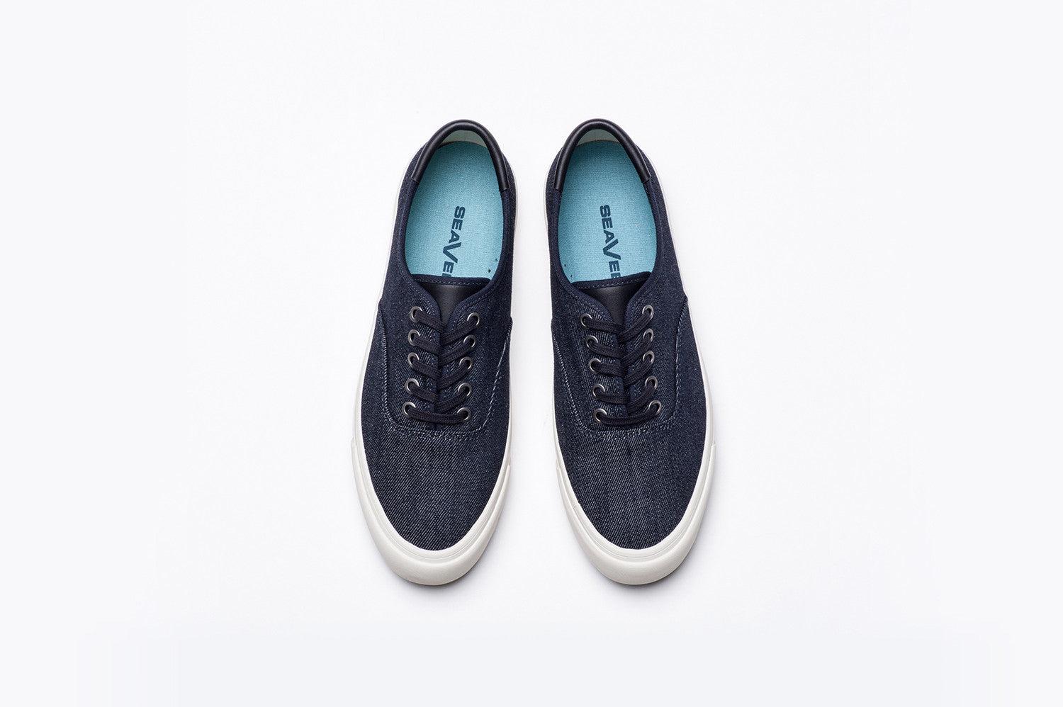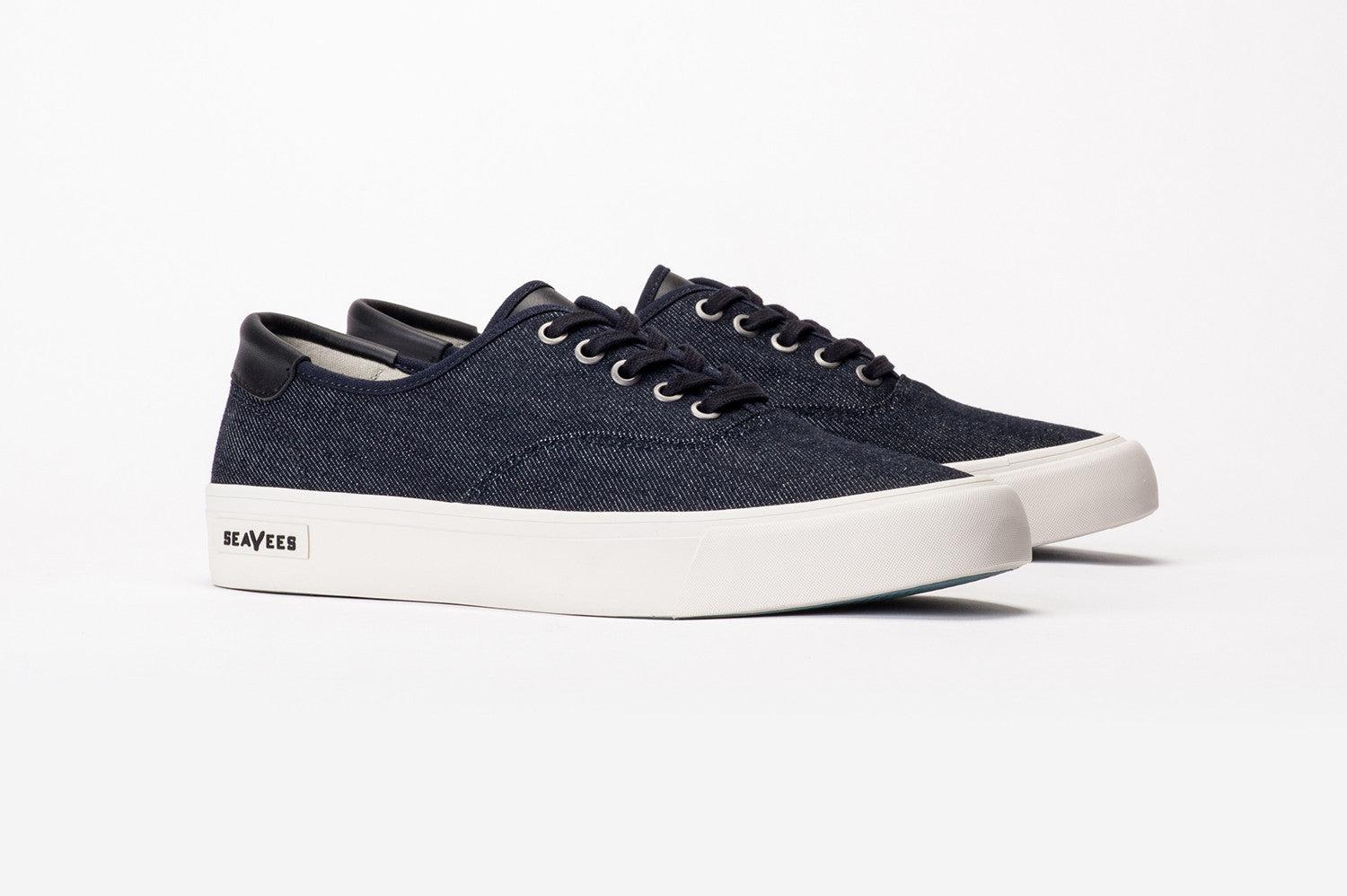 This Spring SeaVees is offering a classic,textural take on our iconic Legend. Inspired by the elite business class on-board Pan Am flights in the 1960s, the Legend Clipper Class features premium selvedge denim and engineer stripe with full grain leather heel counter. Uppers of selvedge denim with full grain leather heel counter Contrast stitching and blue foxing stripe for a clean , slightly sporty appeal Comfort memory foam footbed lined in soft cotton featuring cooling air flow channels Genuine gum rubber outsole ensures flexibility, longer wear and softer step Herringbone sole design offers maximum surface grip THIS ITEM IS FINAL SALE. NO REFUNDS OR EXCHANGES ALLOWED.