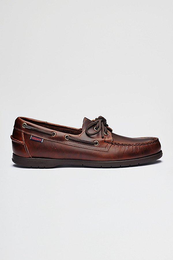 The Endeavor boat shoe is built like a true nautical footwear classic: the traditional way. These naturally waterproof, long-lasting, slip-on boat moccasins are made of leather hot stuffed with a rich combination of oils and waxes, and then hand-sewn with meticulous craftsmanship. The shoe is conditioned and enhanced by a natural polish that comes to life in this low cut classic canoe moccasin style construction. The boat shoe touts a comfortable leather sock lining, a 360 rawhide lace system and non-marking, anti-slip, siped soles made from a rubber that will provide a dependable grip on deck or on land, in all weather conditions. Content + Care Leather/Rubber Imported Spot Clean Sebago Endeavor Boat Shoe Shoe in Blue Navy, Mens at Urban Outfitters