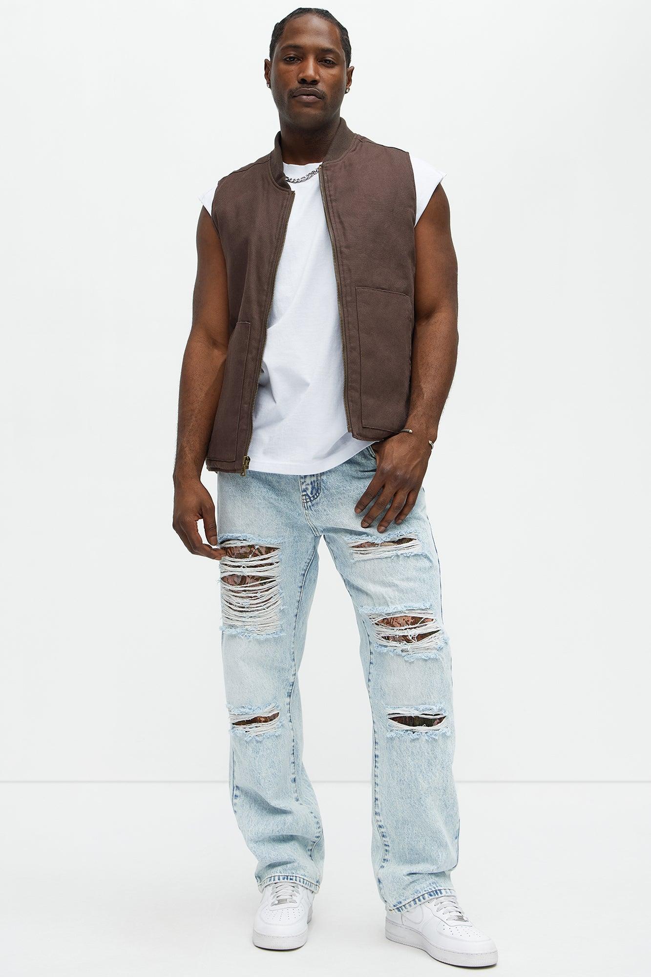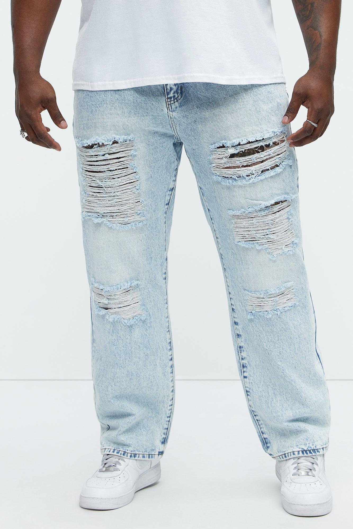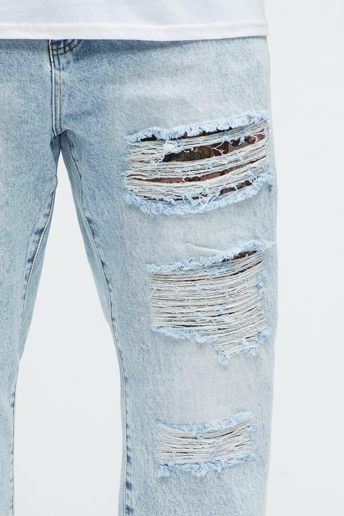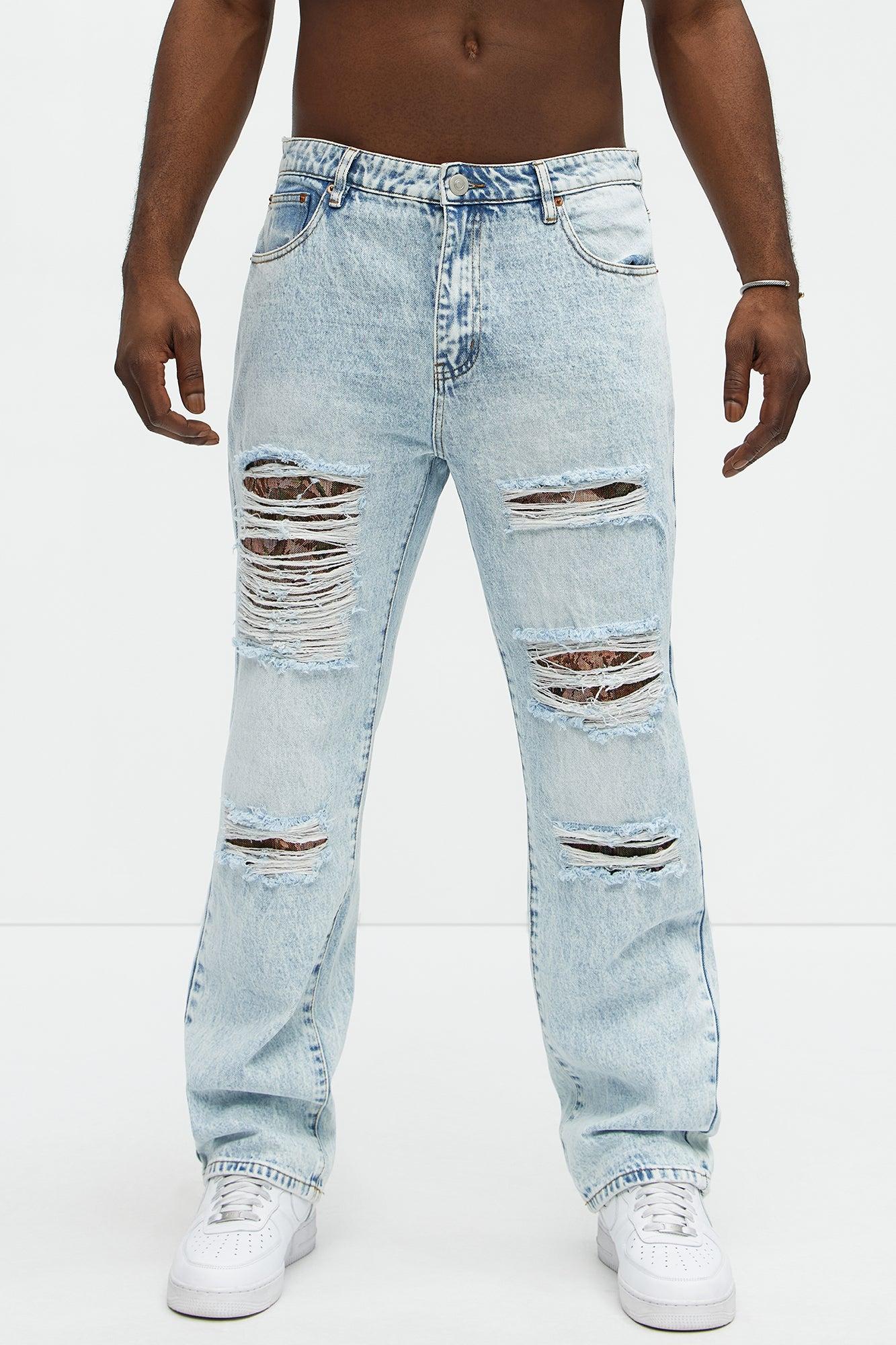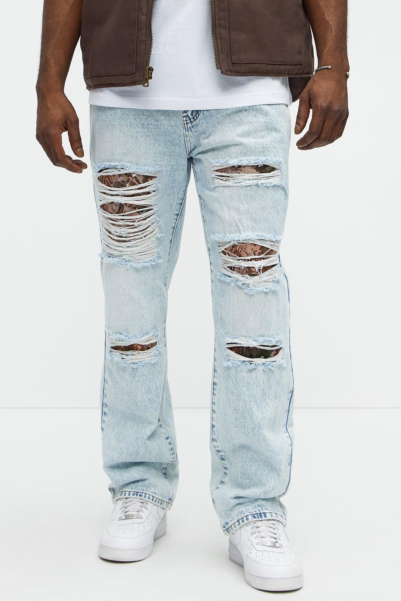 Sebastian Tapestry Destroyed Straight Jeans - Light Wash