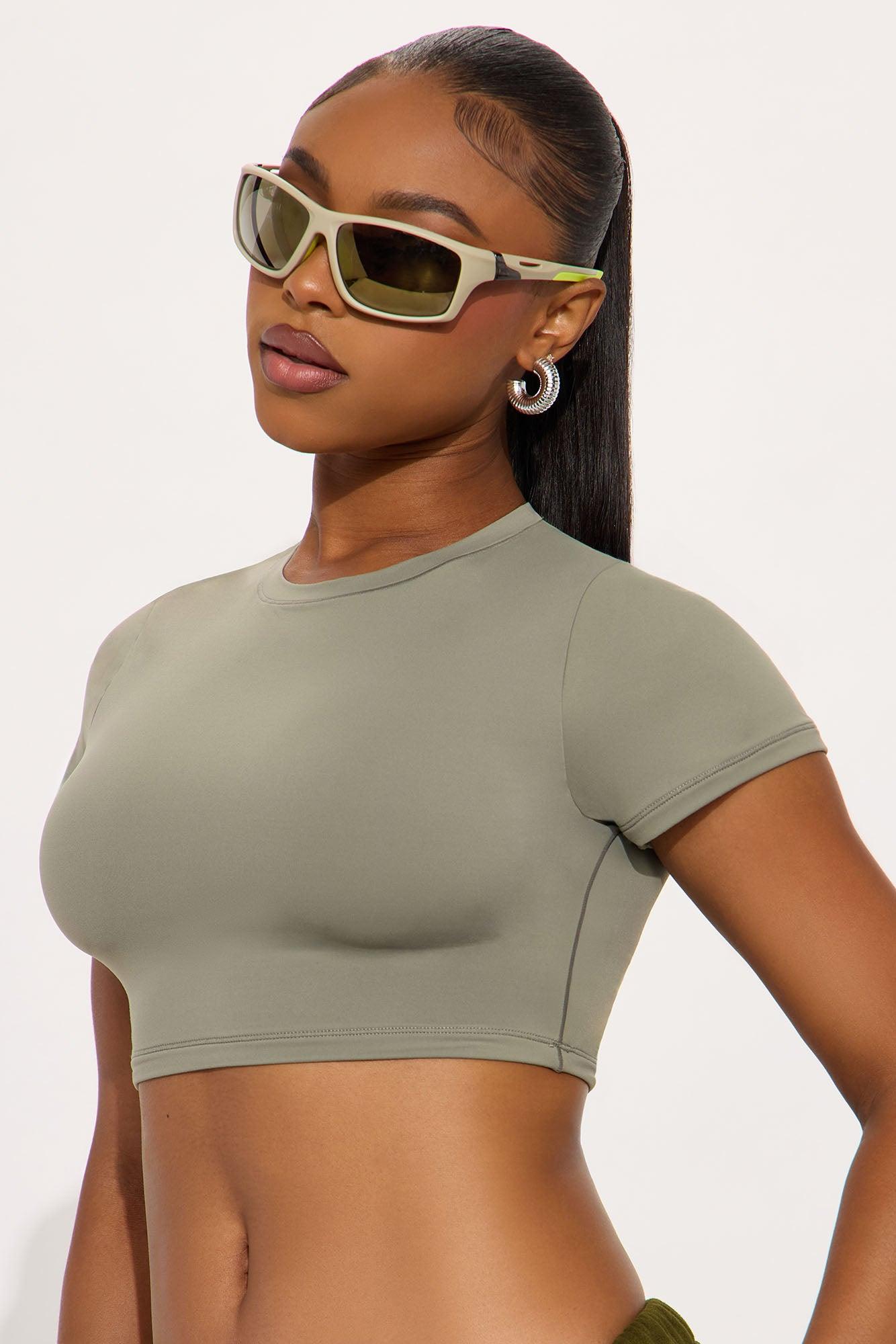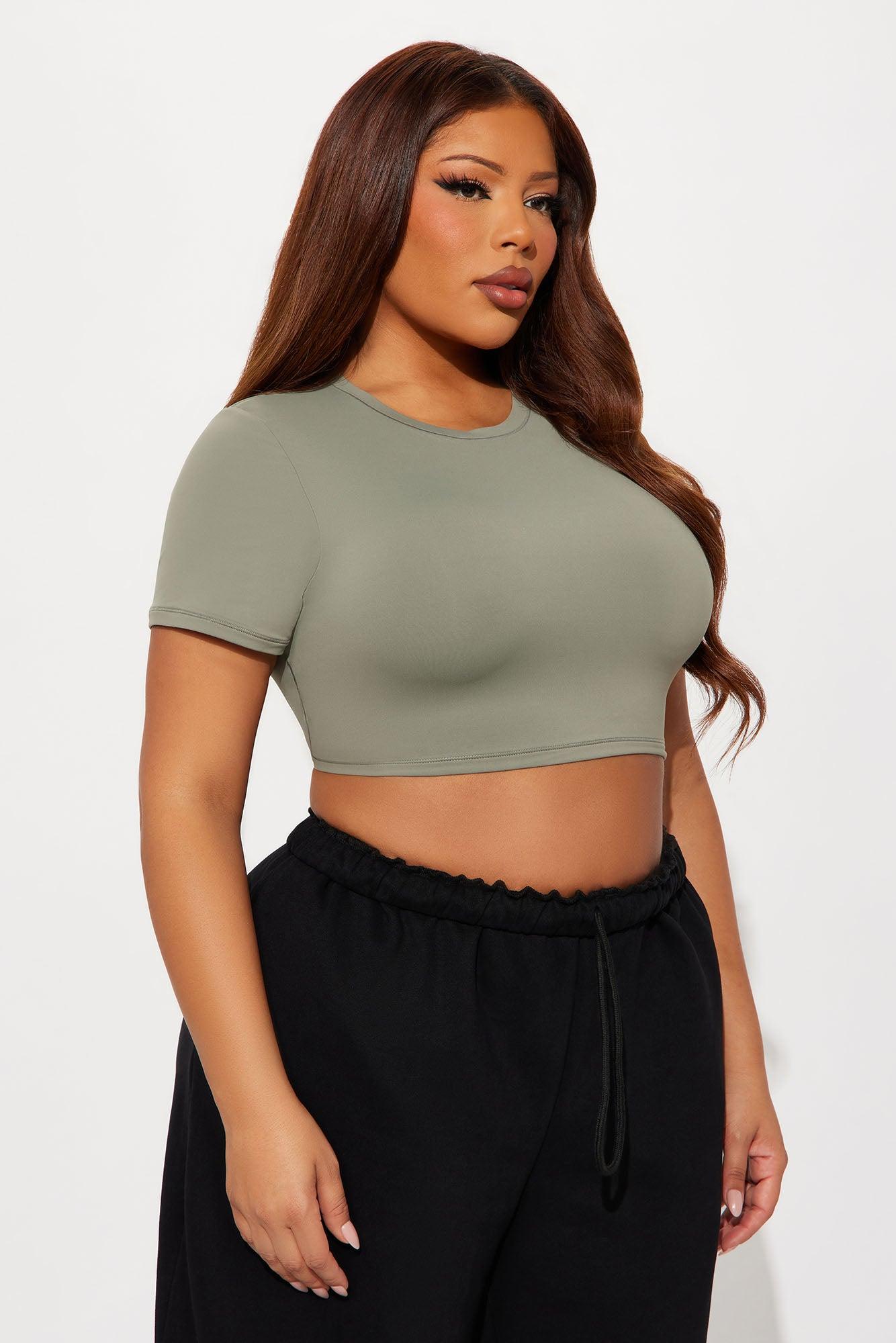 Second Skin Double Lined Super Cropped Tee - Military Green Female