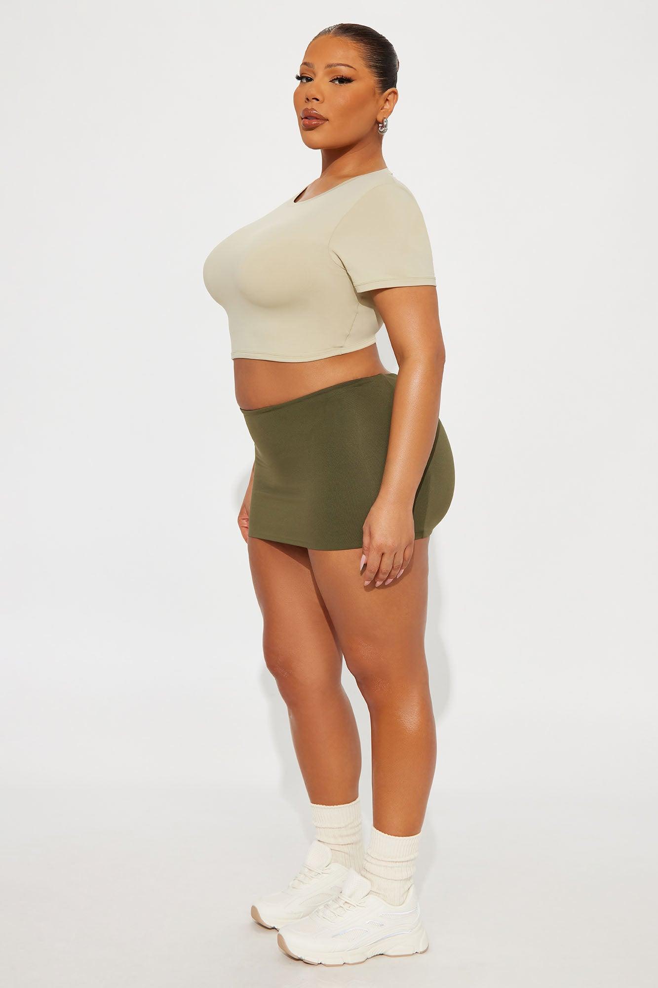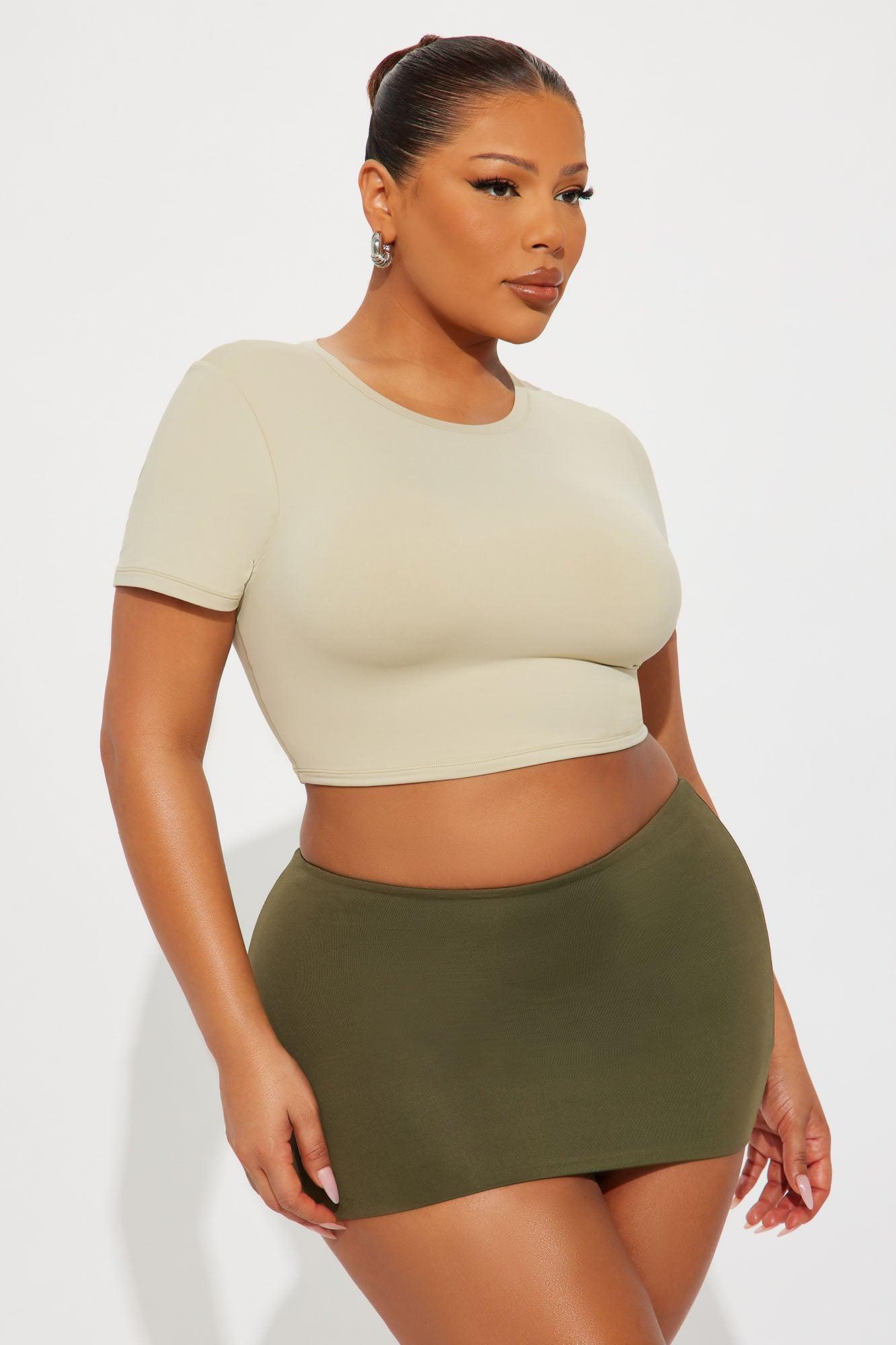 Available In Black, Bone, Chocolate, Military Green And Stone. Baby Tee Stretch Short Sleeve Double Lined Buttery Soft Cropped Shell: 75% Nylon 25% Spandex Lining: 75% Nylon 25% Spandex Imported