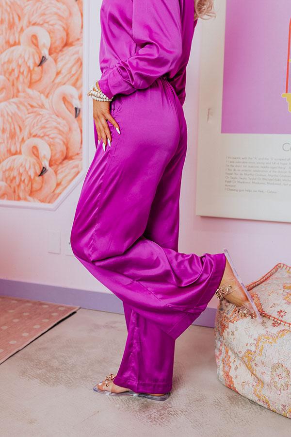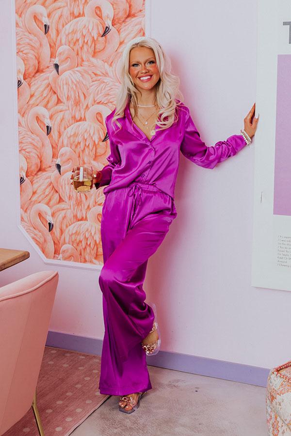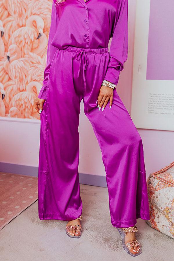 - You will love these luxe feeling pajama pants! - Unlined, lightweight material with a satin finish - A high elastic waistline with a drawstring tied front - Functional side pockets - A relaxed silhouette that ends in straight floor length hemlines