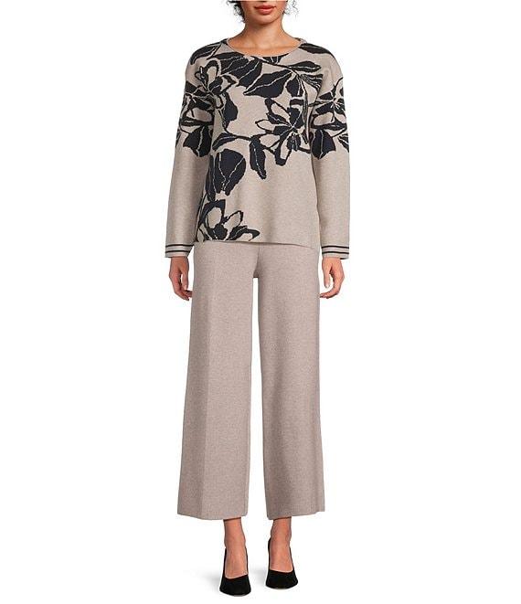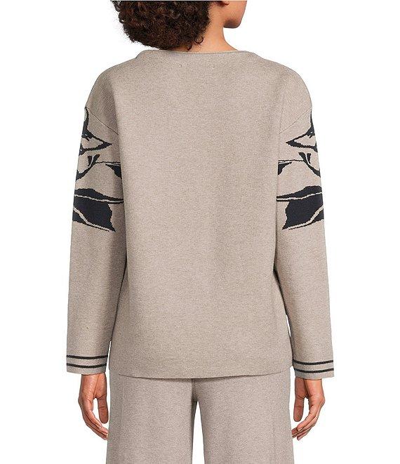 See And Be Seen Floral Jacquard Knit Boat Neck Long Sleeve Pullover