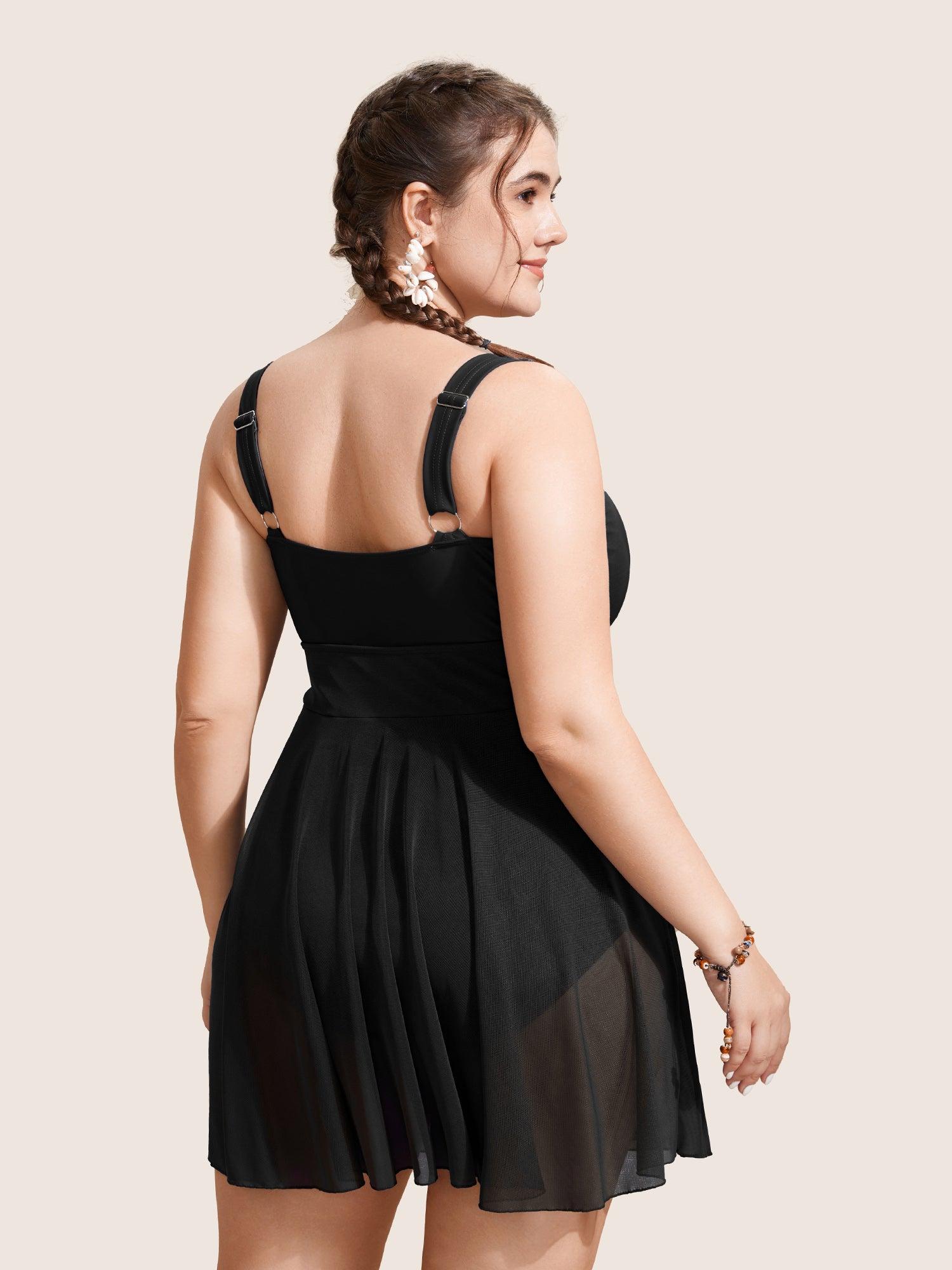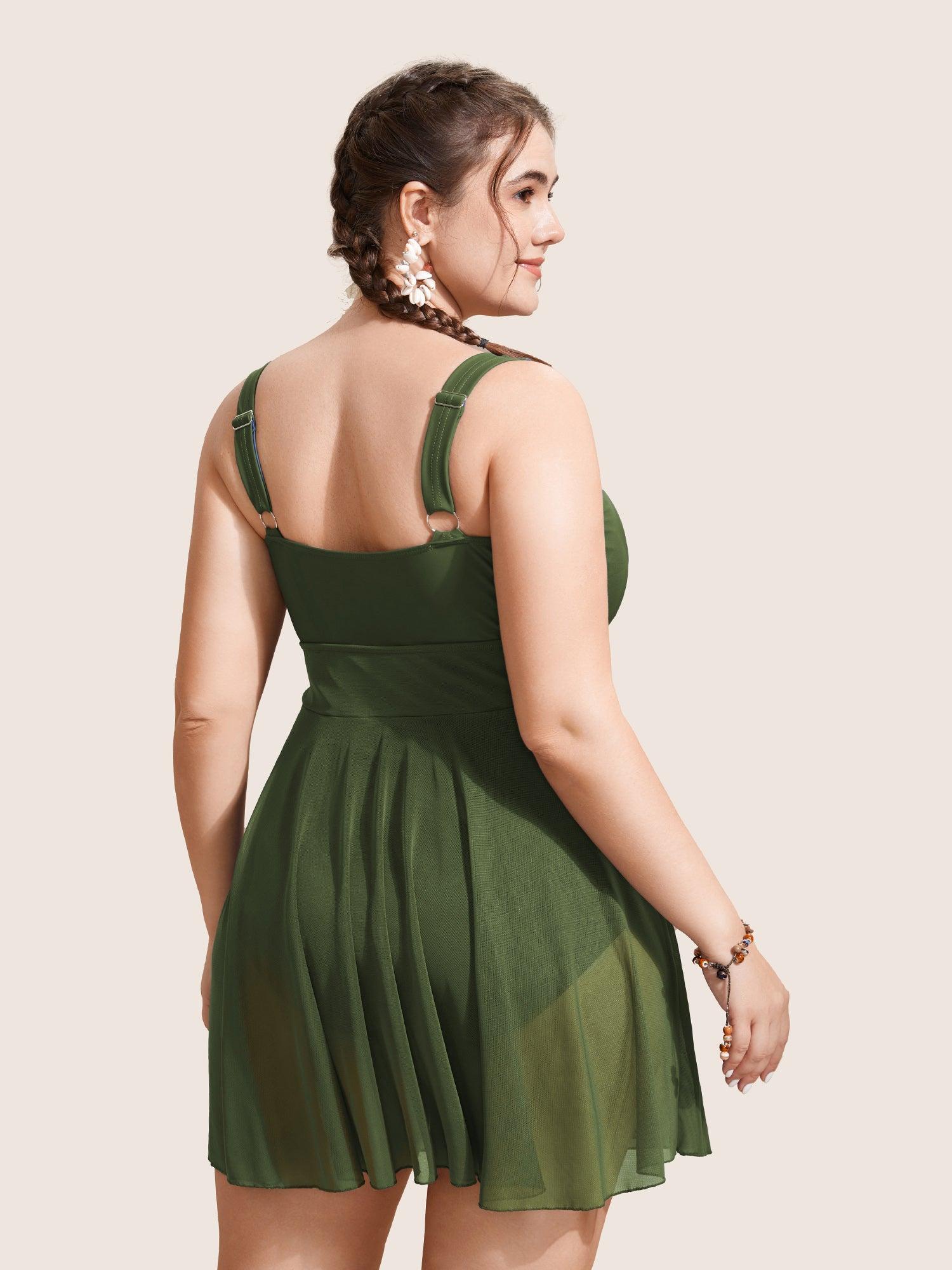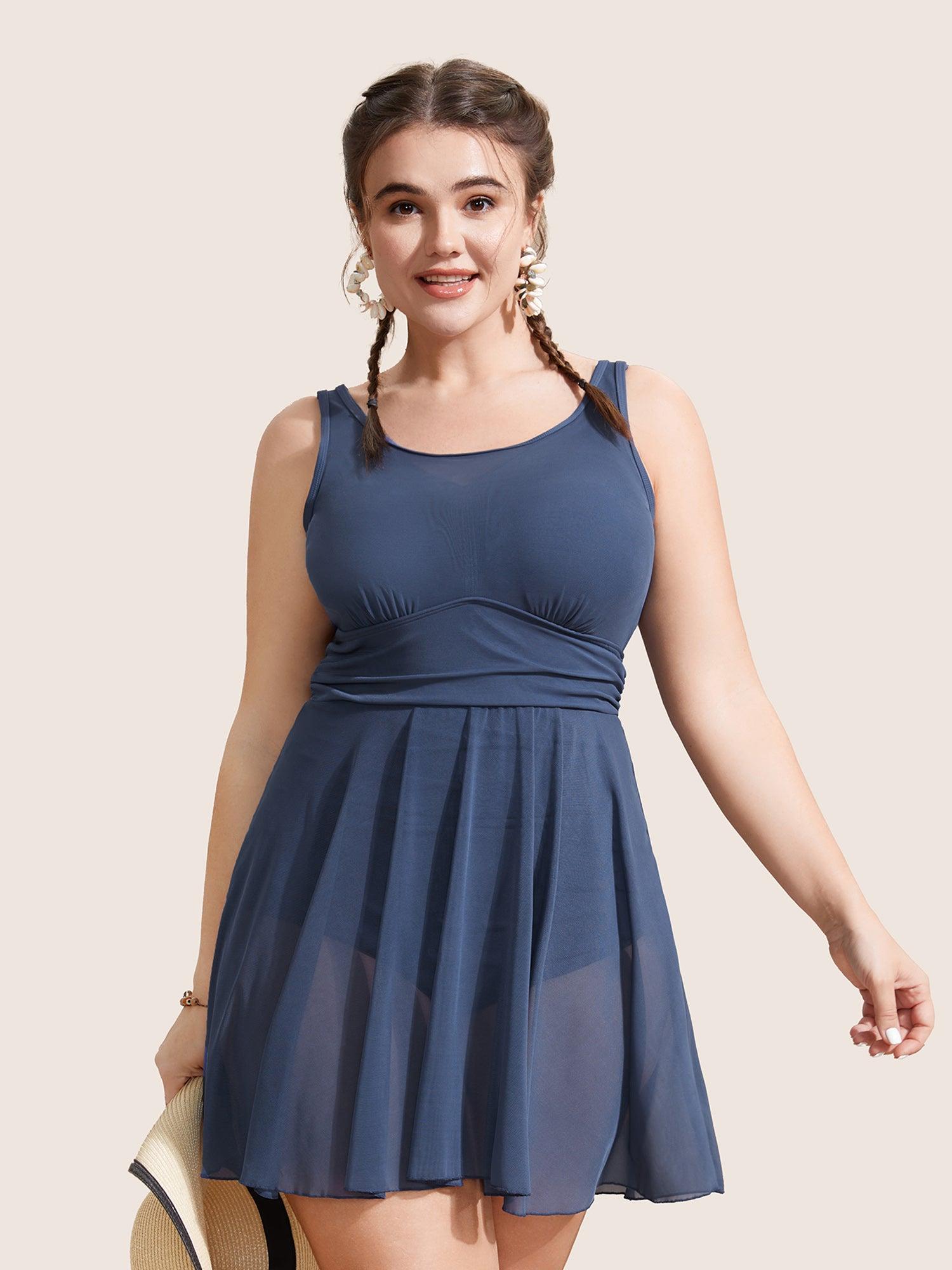 Shop See Through Patchwork Gathered Swim Dress now and redefine your style with confidence at BloomChic. Tailored for mid and plus-size women. This trendy Swimwear Women, sizes 10-30. Color:Indigo,ArmyGreen,Black;Style:Beach Vacation;Cup Type:Removable cups;Neckline:Round Neck;Sleeve Type:Sleeveless;Prints:Non;Details:Gathered, See through, Patchwork;Pocket:No-pocket;Belt:No-belt;Chest pad:Removable Padding;Lining:Lining;Closure Type:Non