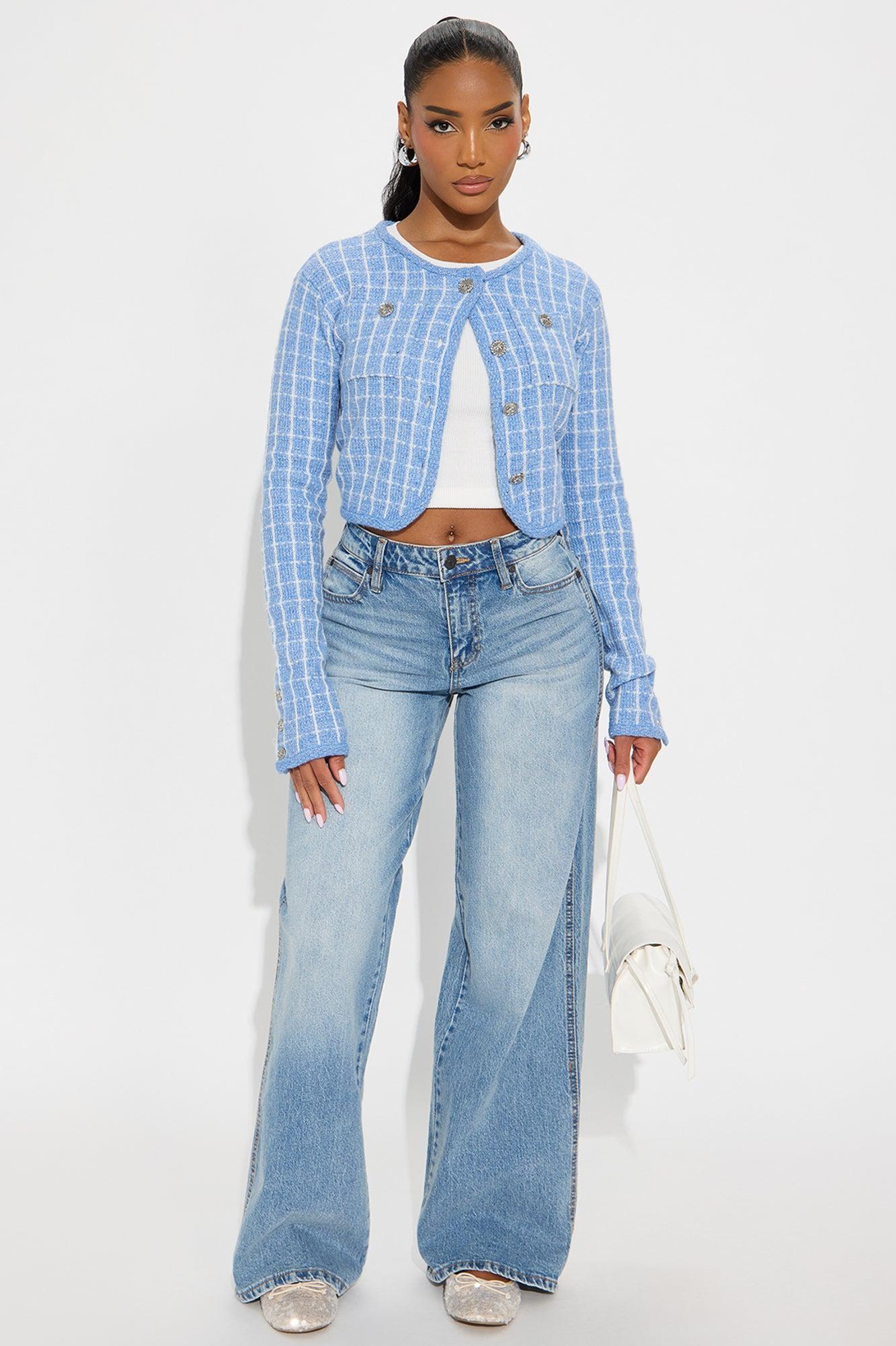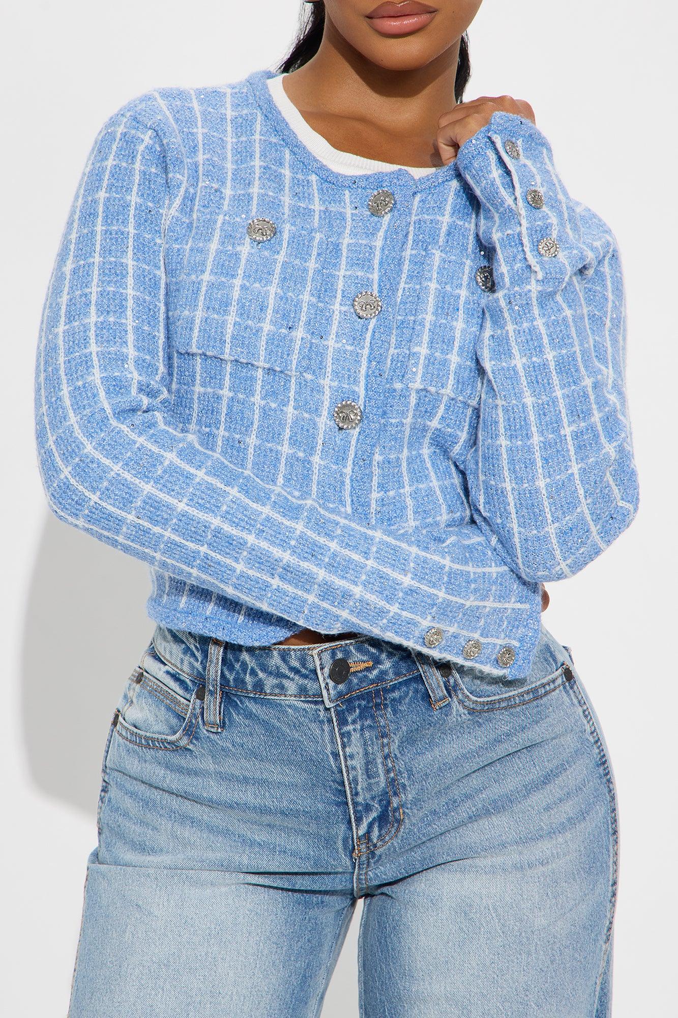 Seek Peace Checkered Hardware Cardigan - Blue/combo Female