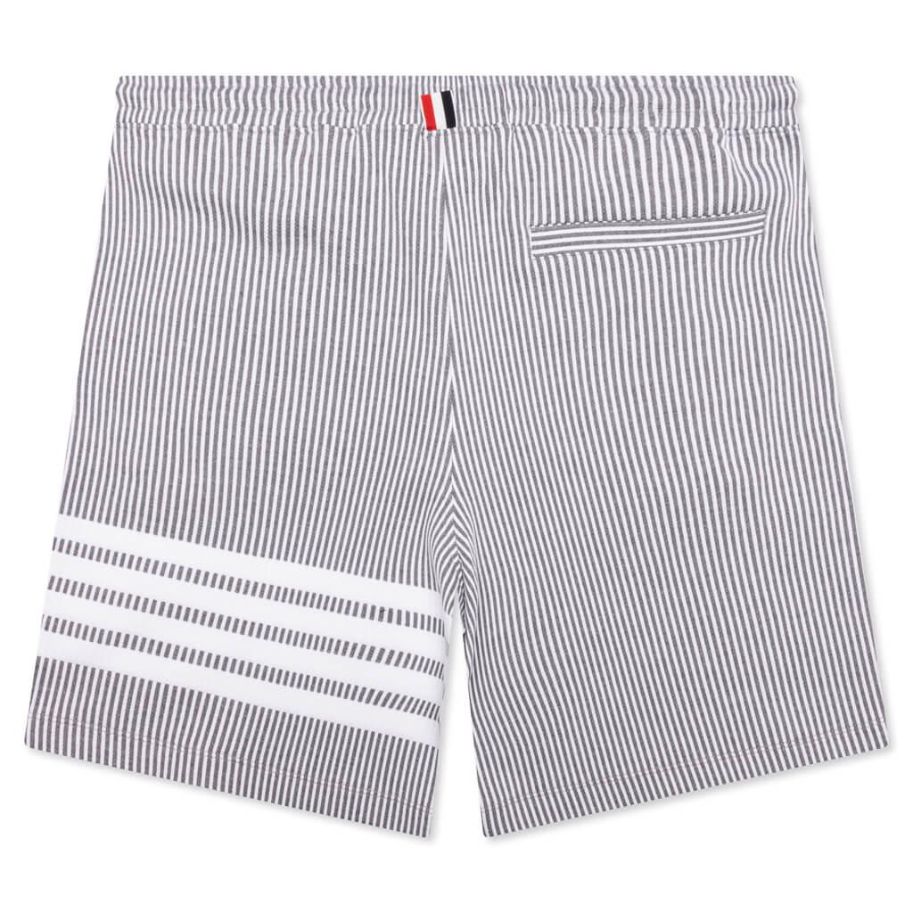 Thom Browne seamlessly incorporates their classic designs into every day wear with the Seersucker Loopback Sweatshorts. The silhouette features the brand’s four-bar stripe detail on the thigh. Prioritizing comfort, the elastic waistband and drawstring is perfect for everyday wear. Stitched patch branding near the bottom cuff completes the look. 100% cotton Four-bar stripe detail Elastic waistband Drawstring Patch branding Style No: MJQ166A-J0063-415