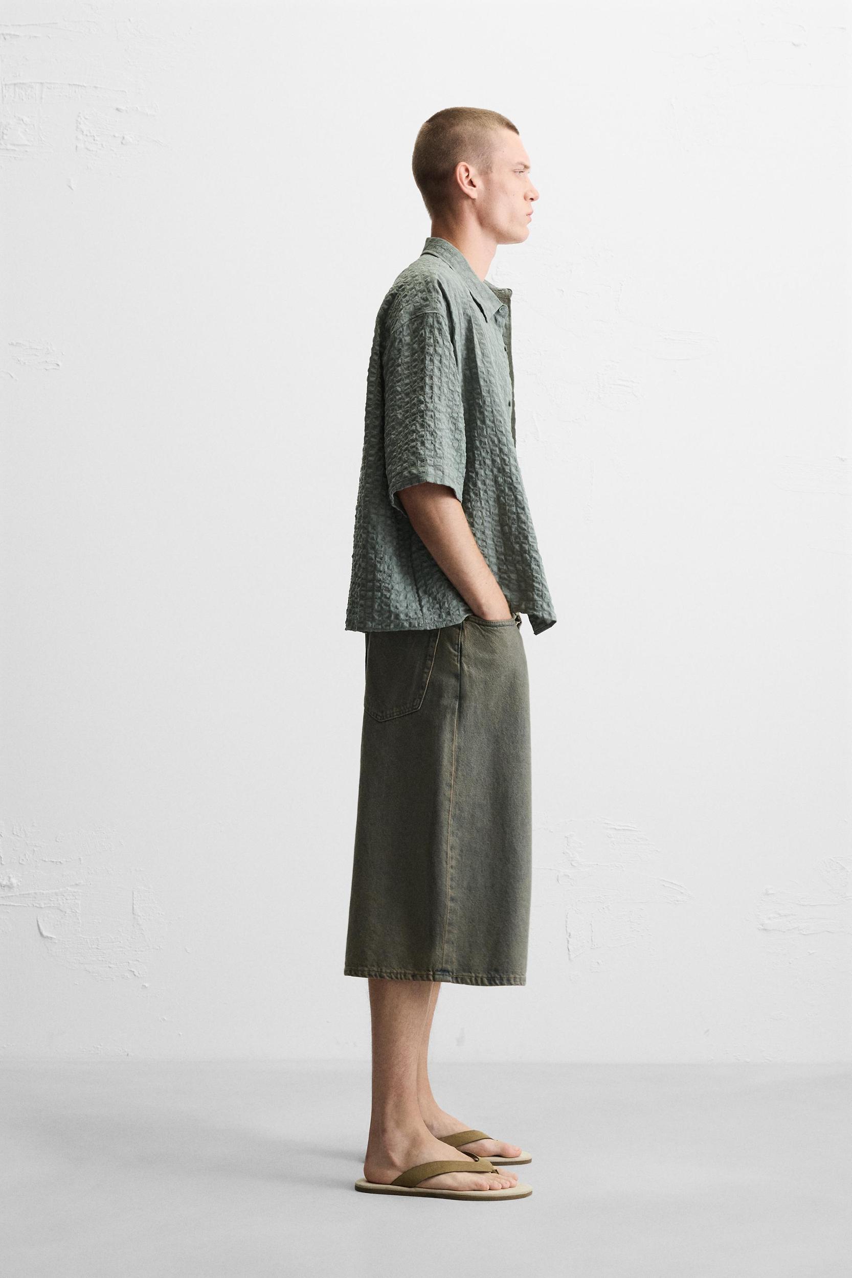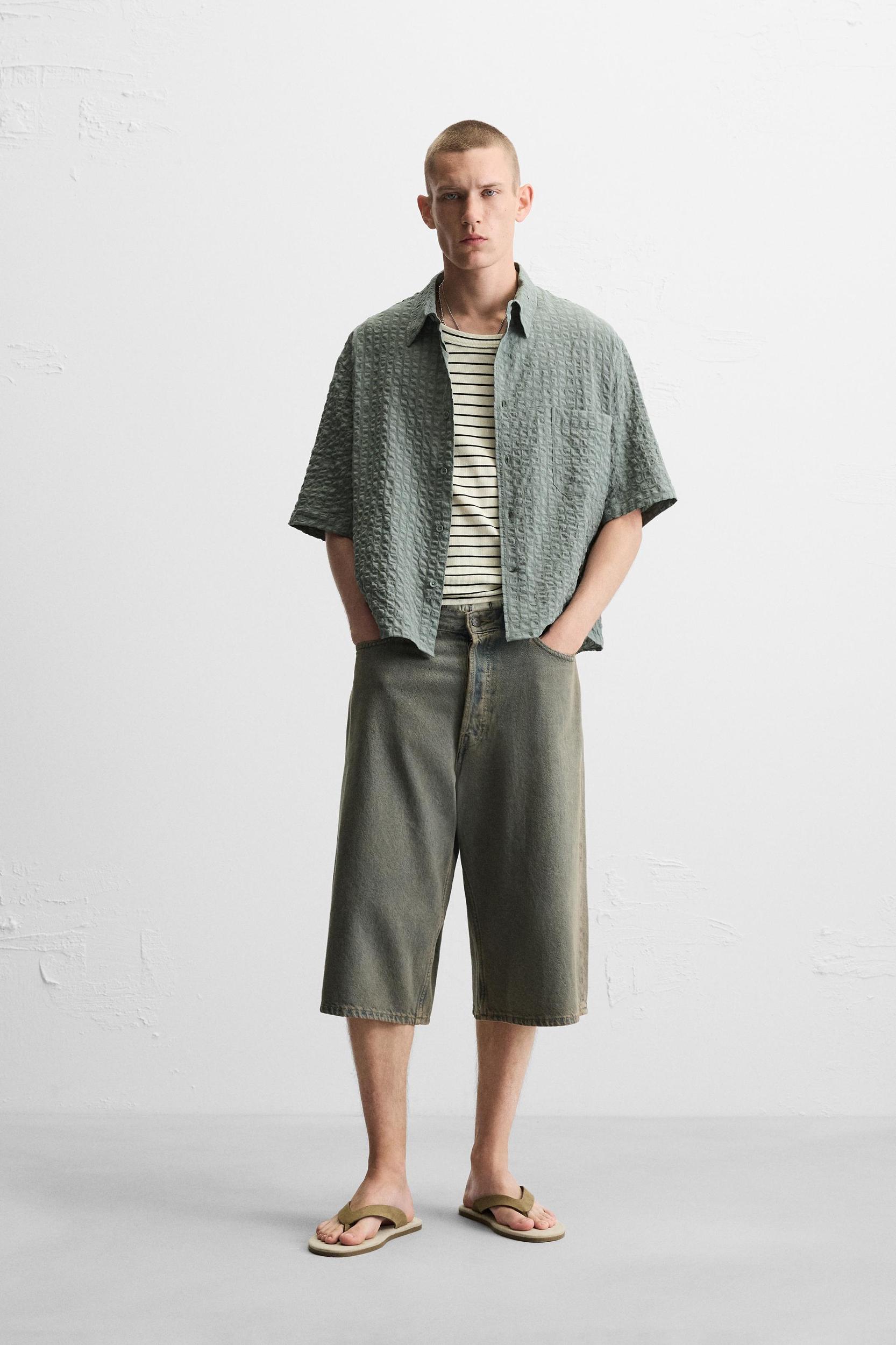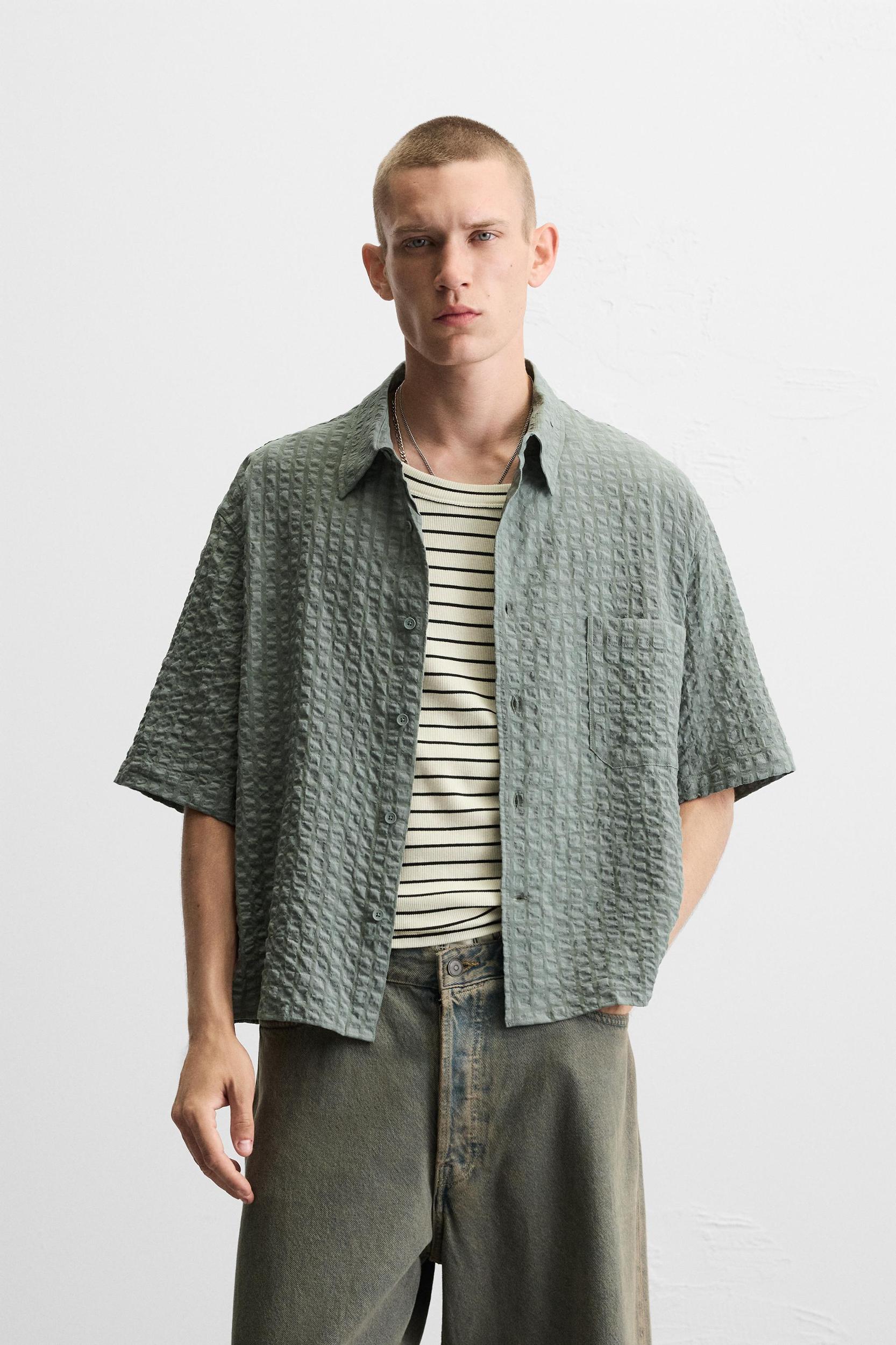 Boxy fit shirt made in cotton and viscose blend fabric. Lapel collar and short sleeves. Patch pocket on chest. Front button closure.
