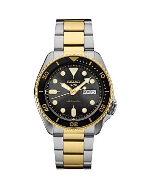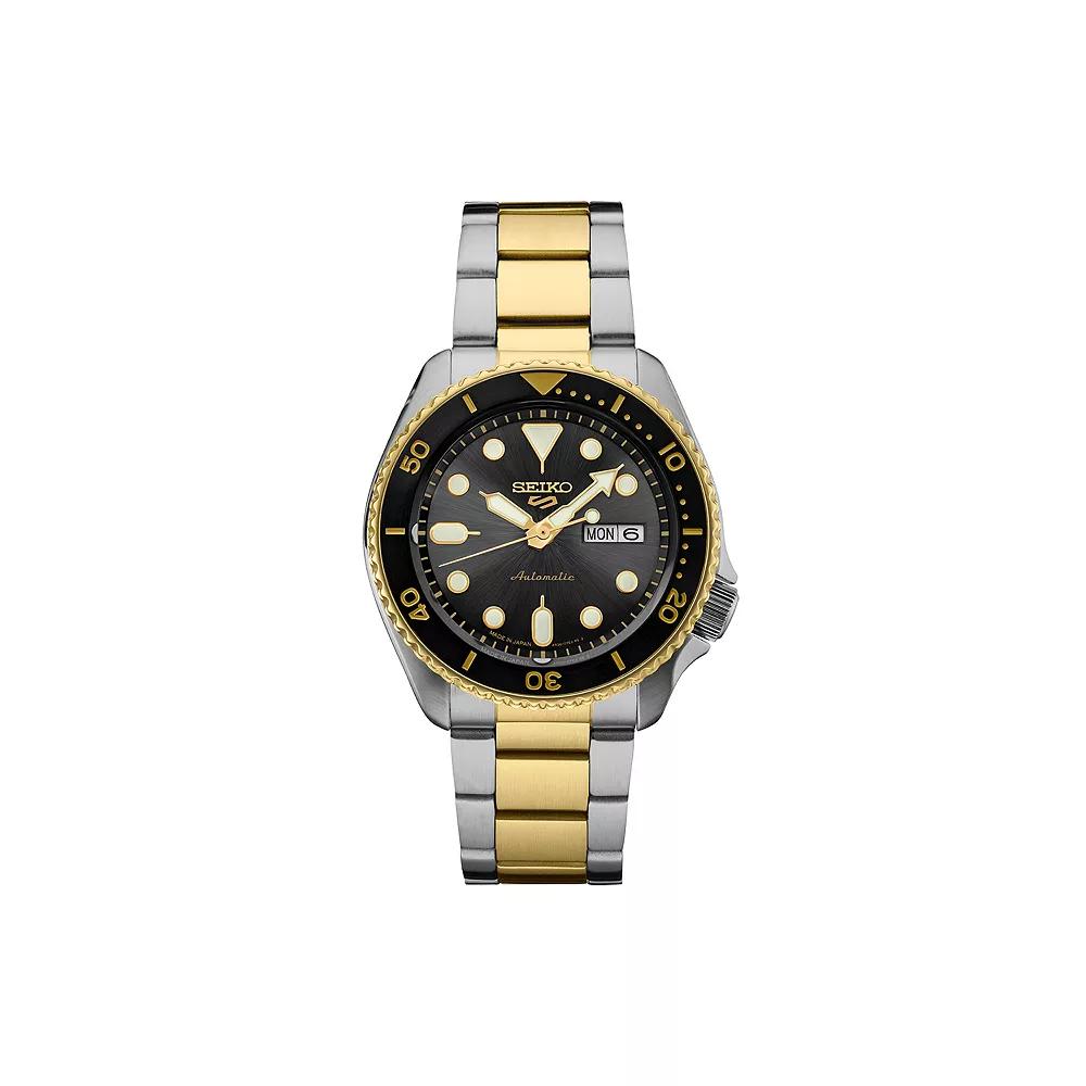 Seiko Mens 5 Sports Charcoal Dial Two Tone Stainless Steel Automatic Watch Gold Silver
