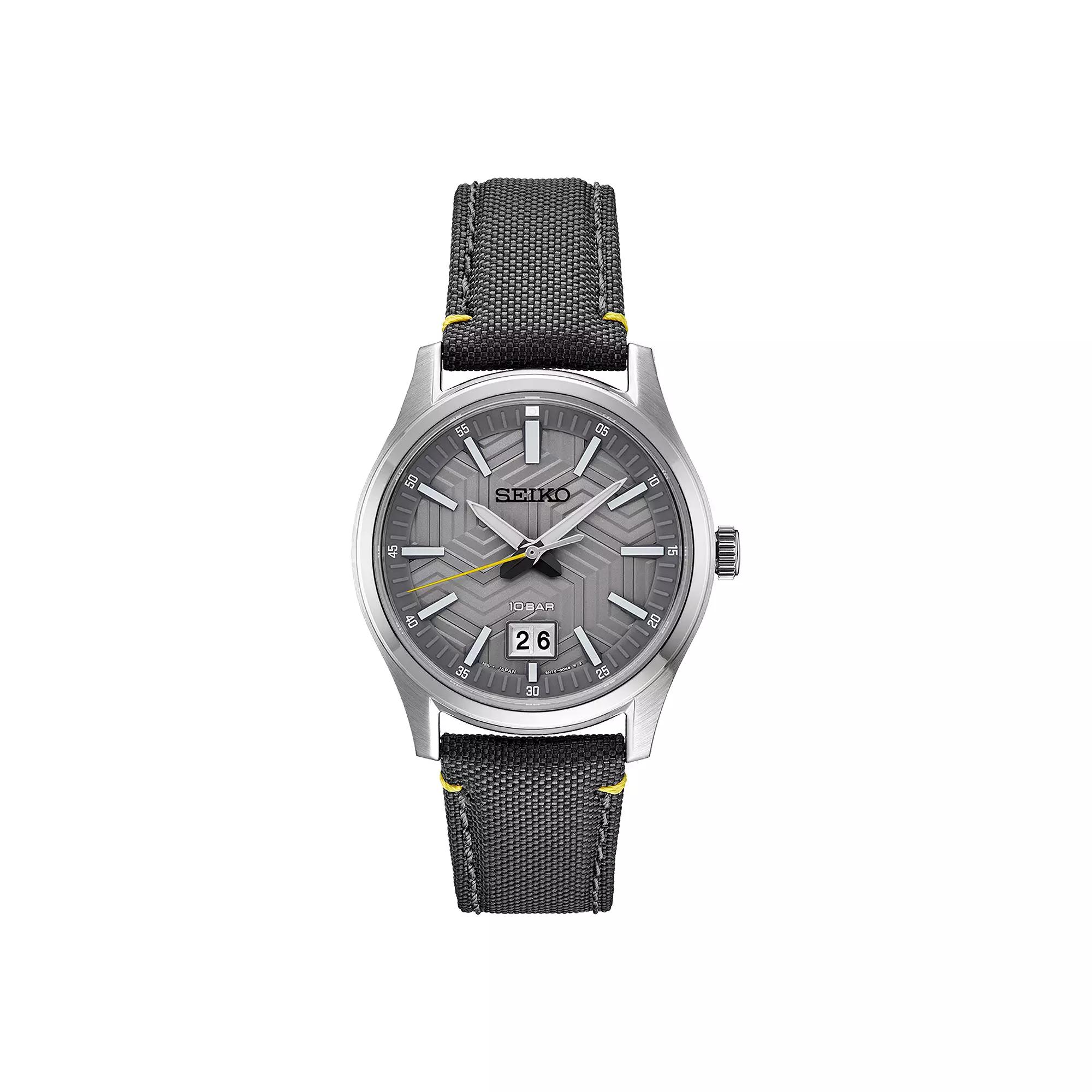 Accent your daily attire with this men's Seiko watch. Click on this JEWELRY & WATCHES GUIDE to learn about fit, styles, materials and more! Accent your daily attire with this men's Seiko watch. Click on this JEWELRY & WATCHES GUIDE to learn about fit, styles, materials and more! DISPLAY Dial type: textured Face cover material: sapphire crystal Illumination: luminescent handsCASE Material: stainless steel Caseback material: stainless steel Waterproof screw-down caseback Diameter: 40 mmBAND Band type: strap Material: nylon Clasp: buckle Lug width: 22 mm Band length: 160 mm - 220 mmDETAILS Movement: quartz Power: battery Water resistance: 100 meters Warranty: manufacturer's 3-year limited For warranty information please click here Model no. SUR543 Size: Large. Color: Grey. Gender: male. Age Group: adult.
