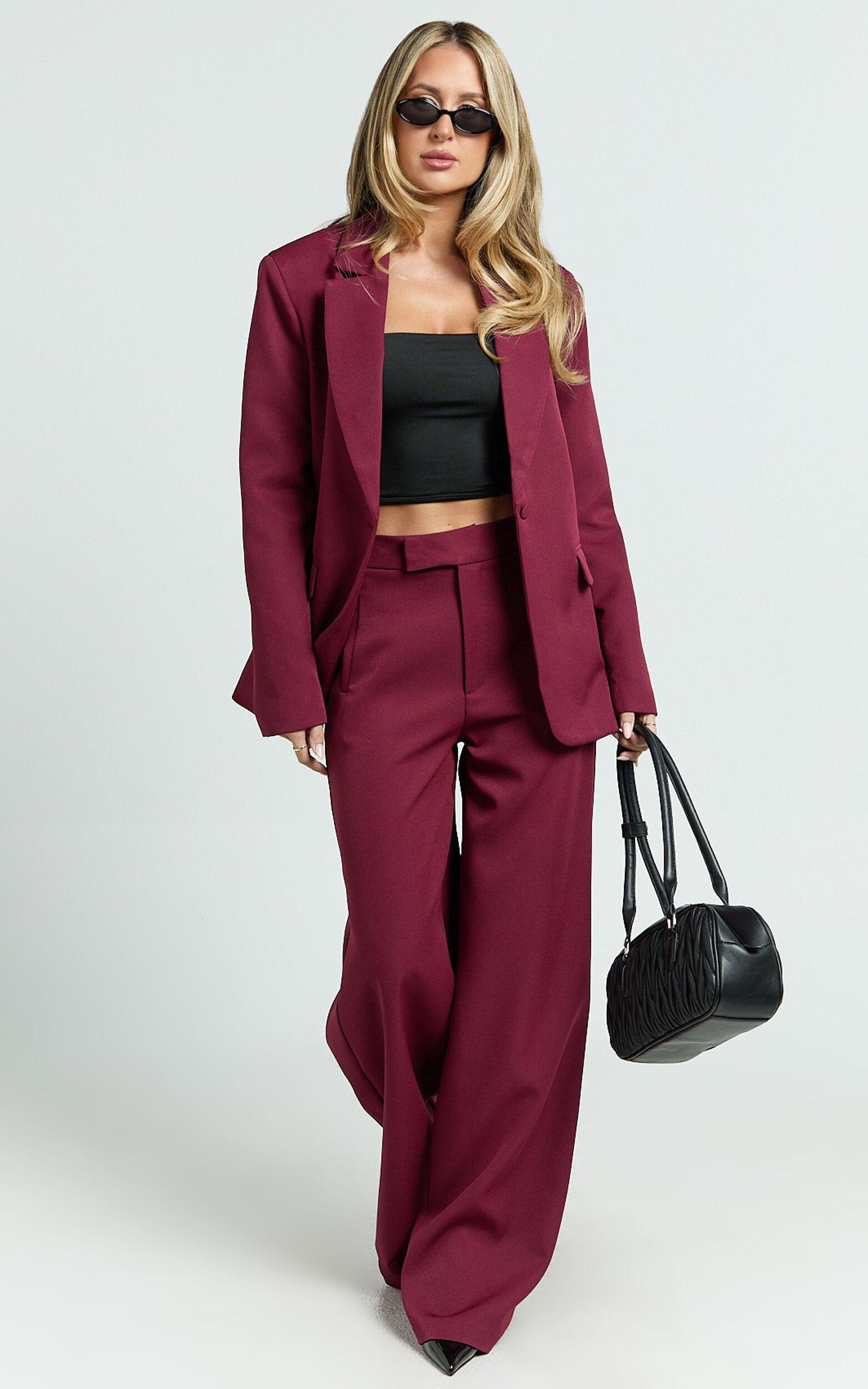 Step up your workwear game with the Selena Blazer - Boxy Single Breasted Blazer in Wine. This statement jacket delivers on style and versatility, making it a must-have for every trendsetter’s wardrobe. The rich wine hue brings a bold pop of colour to your standard office look or weekend plans, while the boxy cut keeps your vibe ultra-modern and chic.Product Details:Mid weight wovenPolyester fabricButtons closureInner liningStandard lengthLong sleevePerfect for workSize and FitSize S / 8 length: 76cm / 29.92inMaterial and CareMain Fabric: 90% Polyester, 10% Rayon Lining: 100% PolyesterLow Stretch