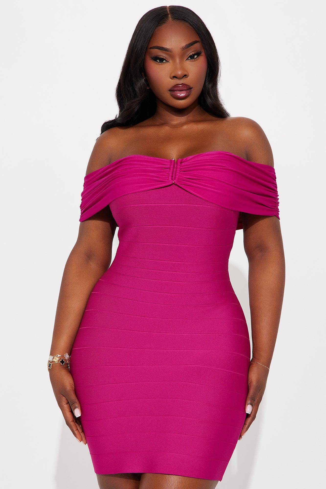 Selene Off Shoulder Bandage Mini Dress - Magenta