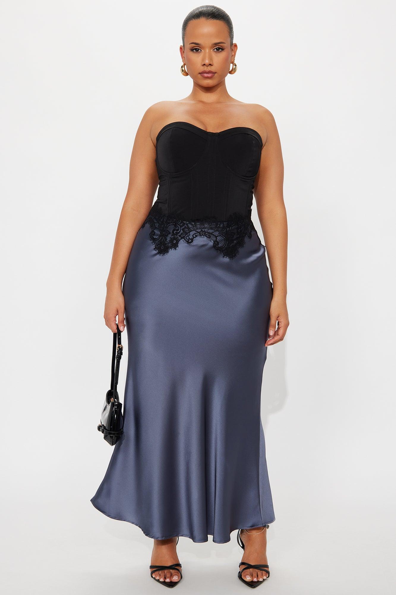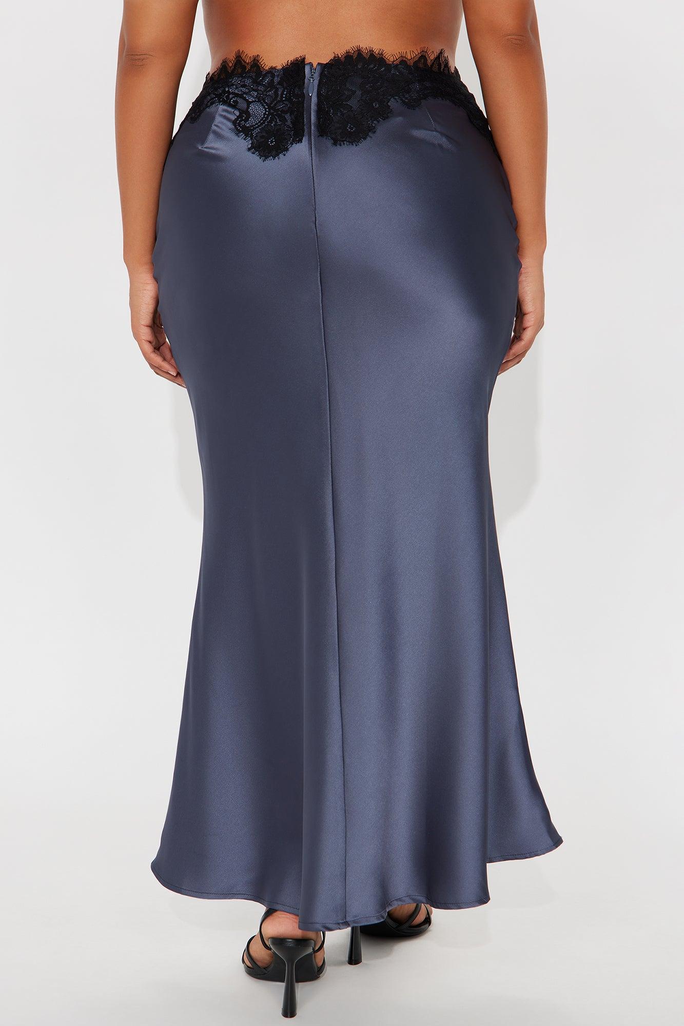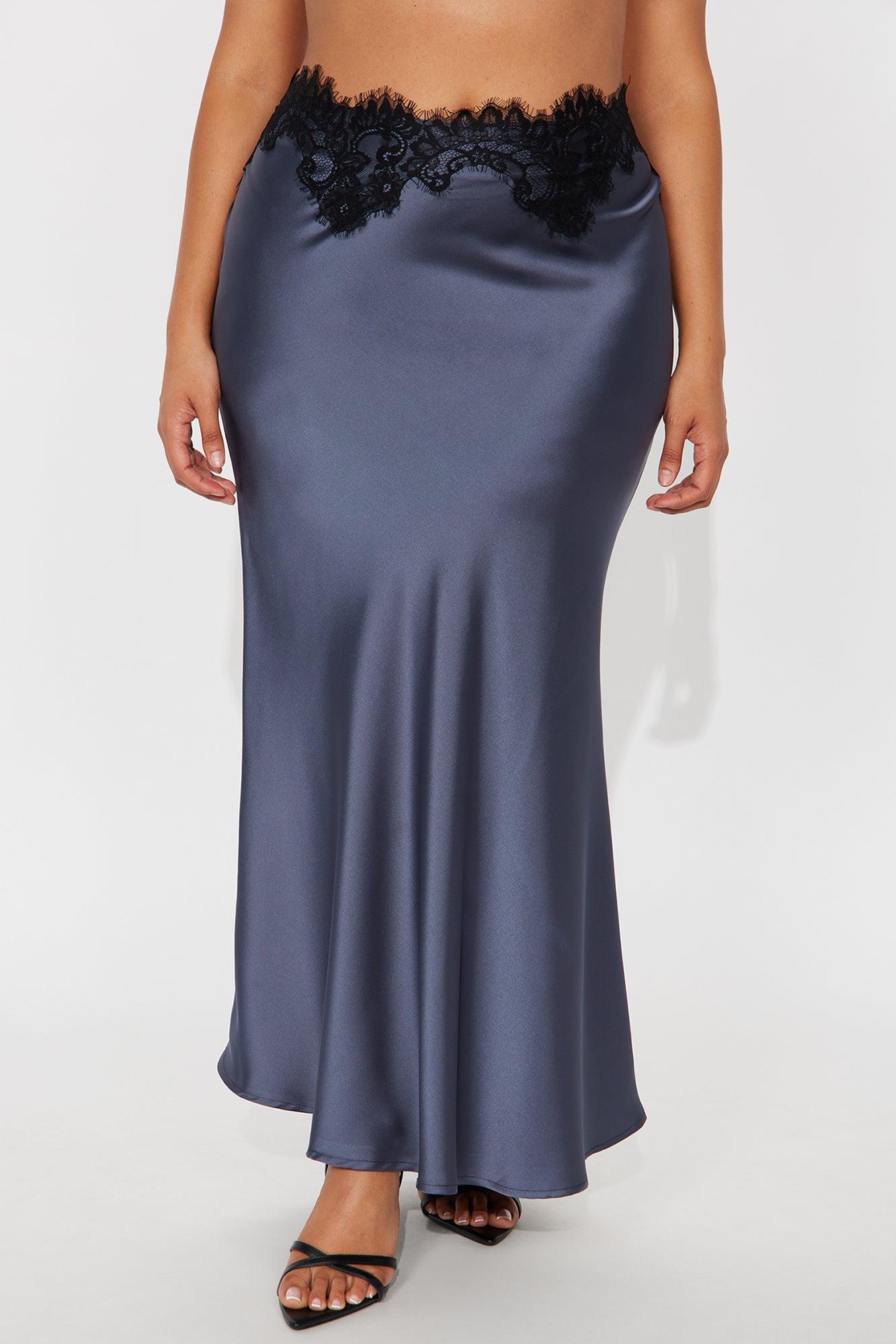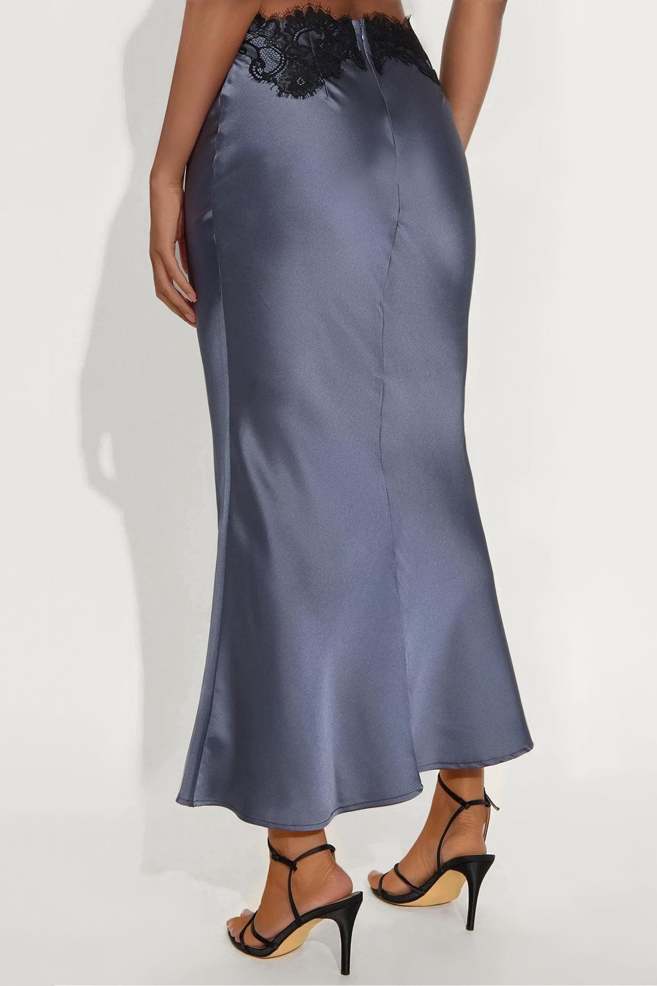 Selene Satin Lace Maxi Skirt - Slate Blue Female
