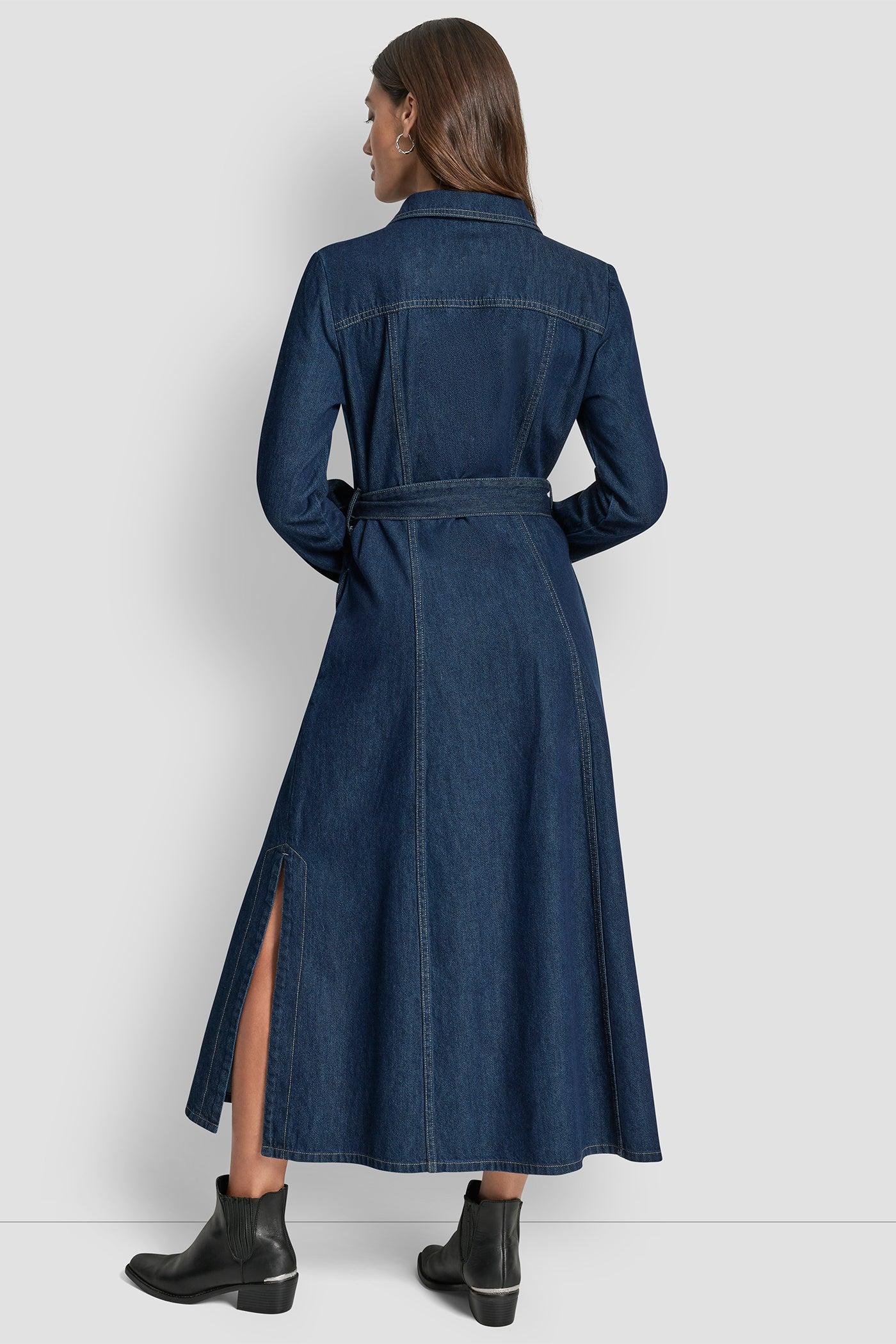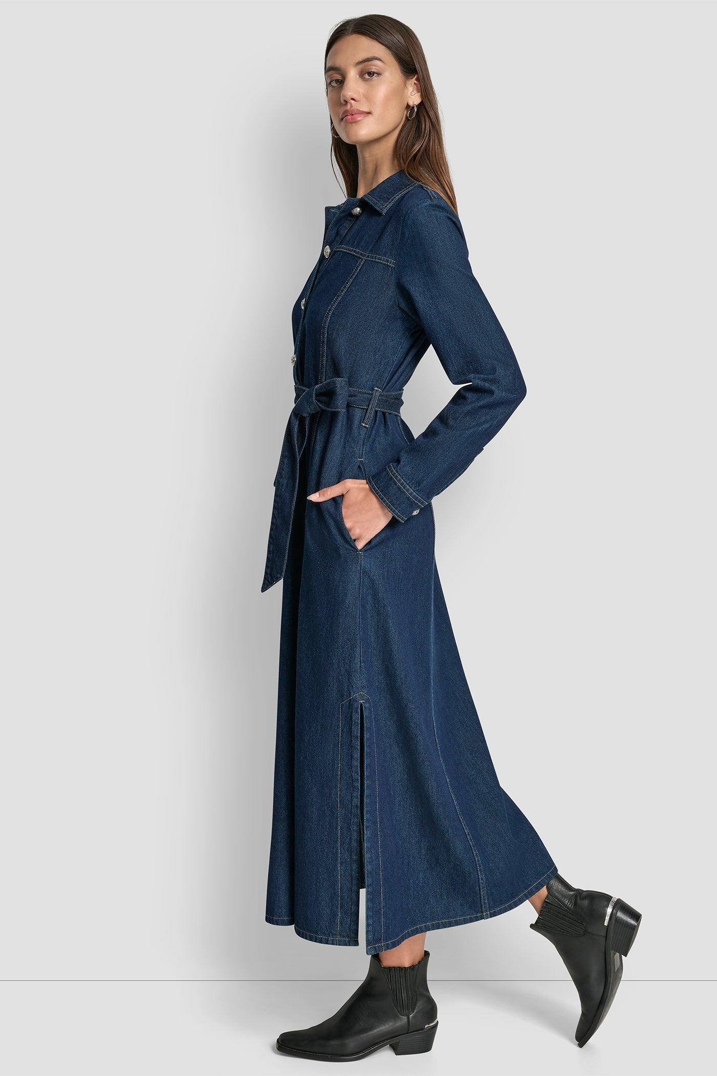 SELF BELT MAXI DRESS WITH SIDE SLITS