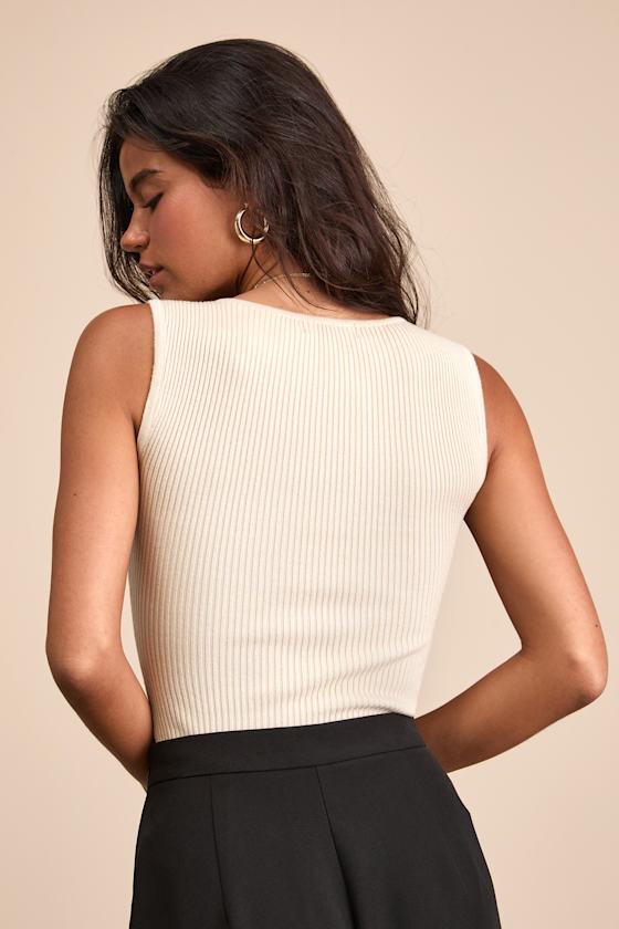 A simple yet effective way to ensure a second date, this ribbed sweater knit bodysuit is potentially the sweetest thing you could add to your flirty wardrobe. The fitted silhouette features wide straps, a subtle sweetheart neckline, and flattering seaming throughout, all before ending with attached bottoms (with snap closures) that allow for the perfect tucked-in look.