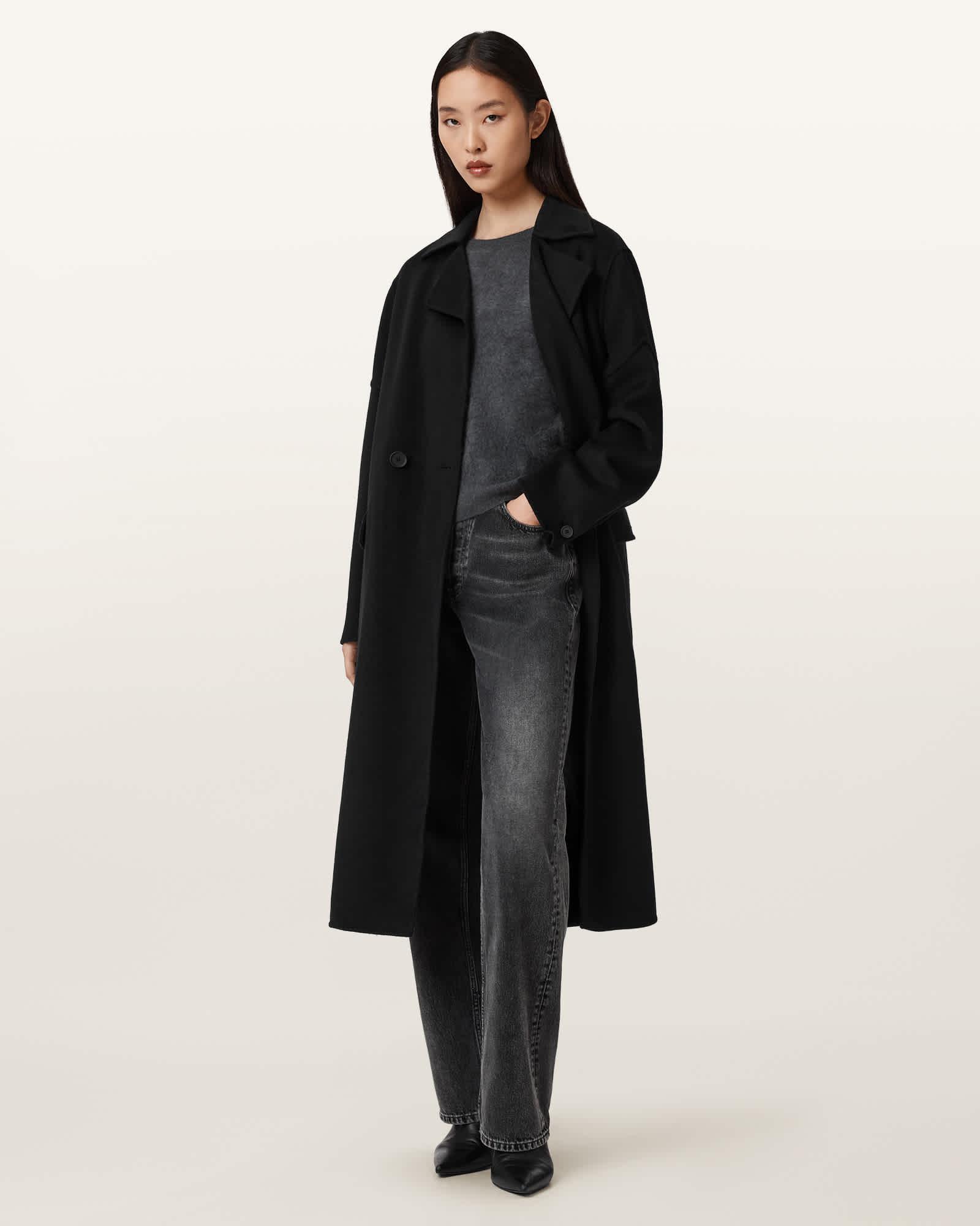 Sellma Double Breasted Coat Black | ALLSAINTS US