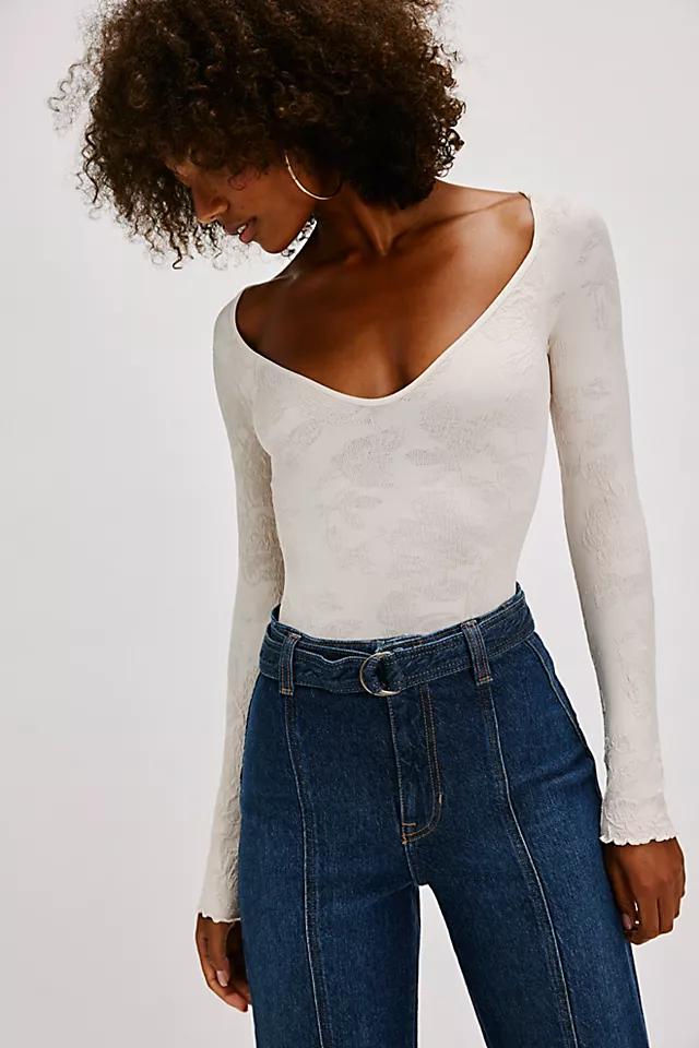 So comfy and chic, this long-sleeve bodysuit is featured in floral-printed version of Intimately’s signature seamless fabrication with a flattering V-neckline for a totally swoon-worthy style.