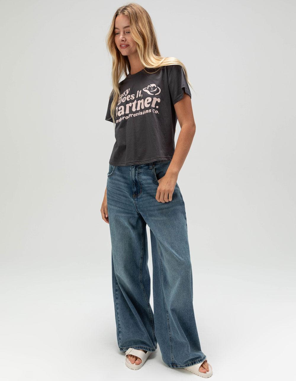 SENDERO PROVISIONS CO. Easy Does It Womens Crop Boxy Tee - OFF-BLACK