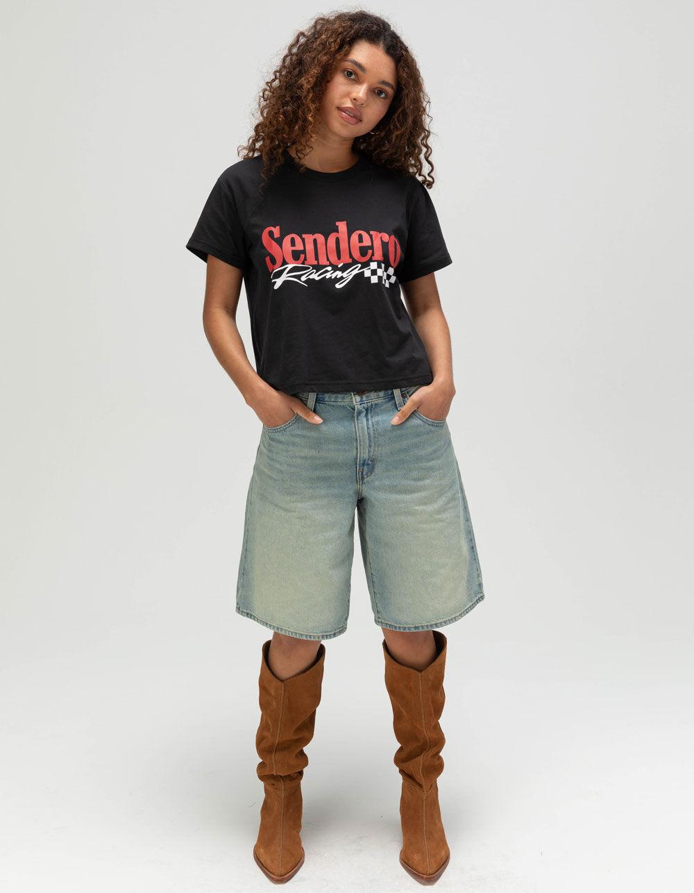 SENDERO PROVISIONS CO. Sendero Racing Womens Crop Boxy Tee - BLACK